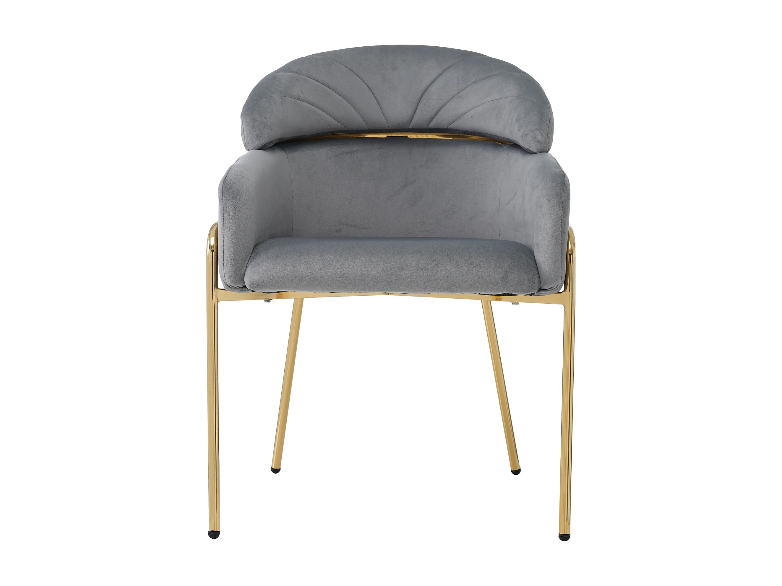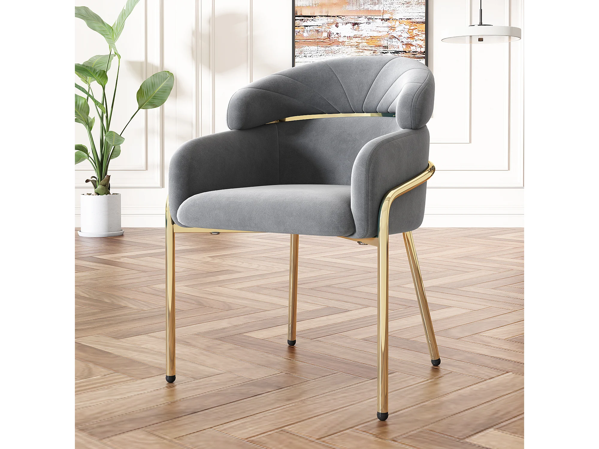1 chaise de salle à manger en velours gris avec dossier rembourré et pieds en métal doré