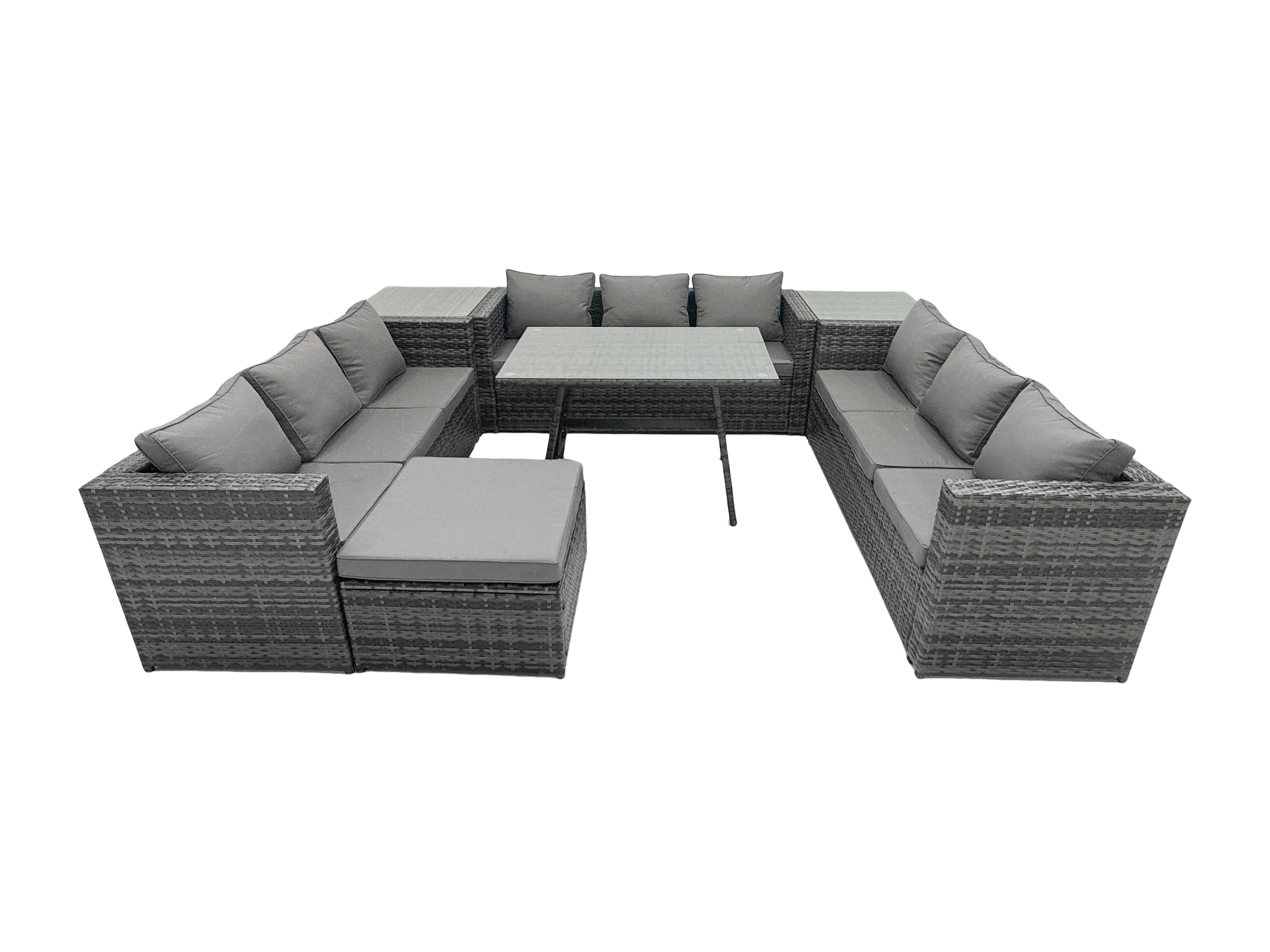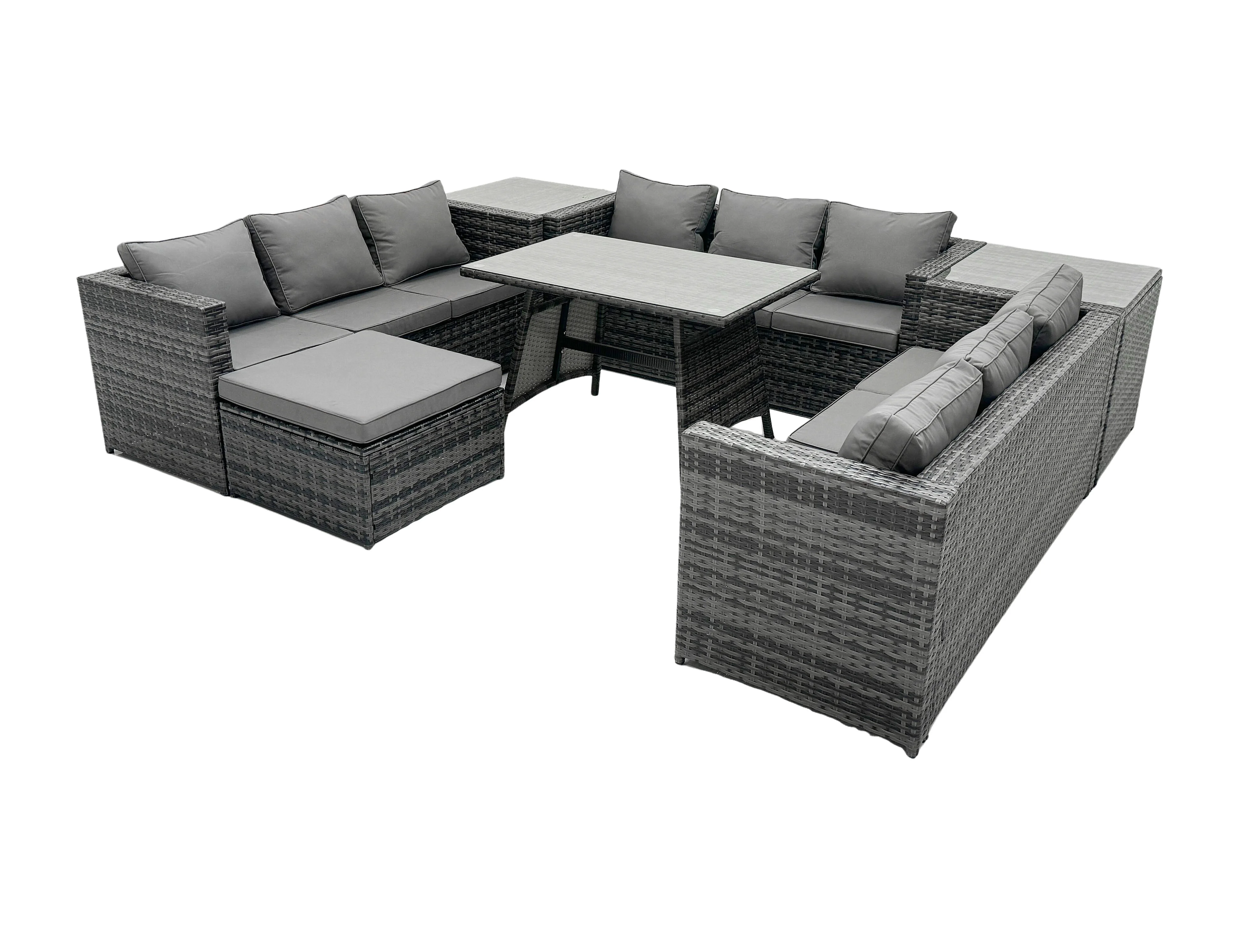 10 places Ensemble de meubles de jardin en rotin avec Table à manger Gris foncé mixte