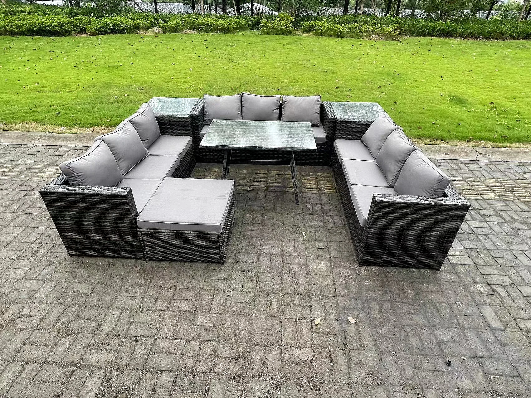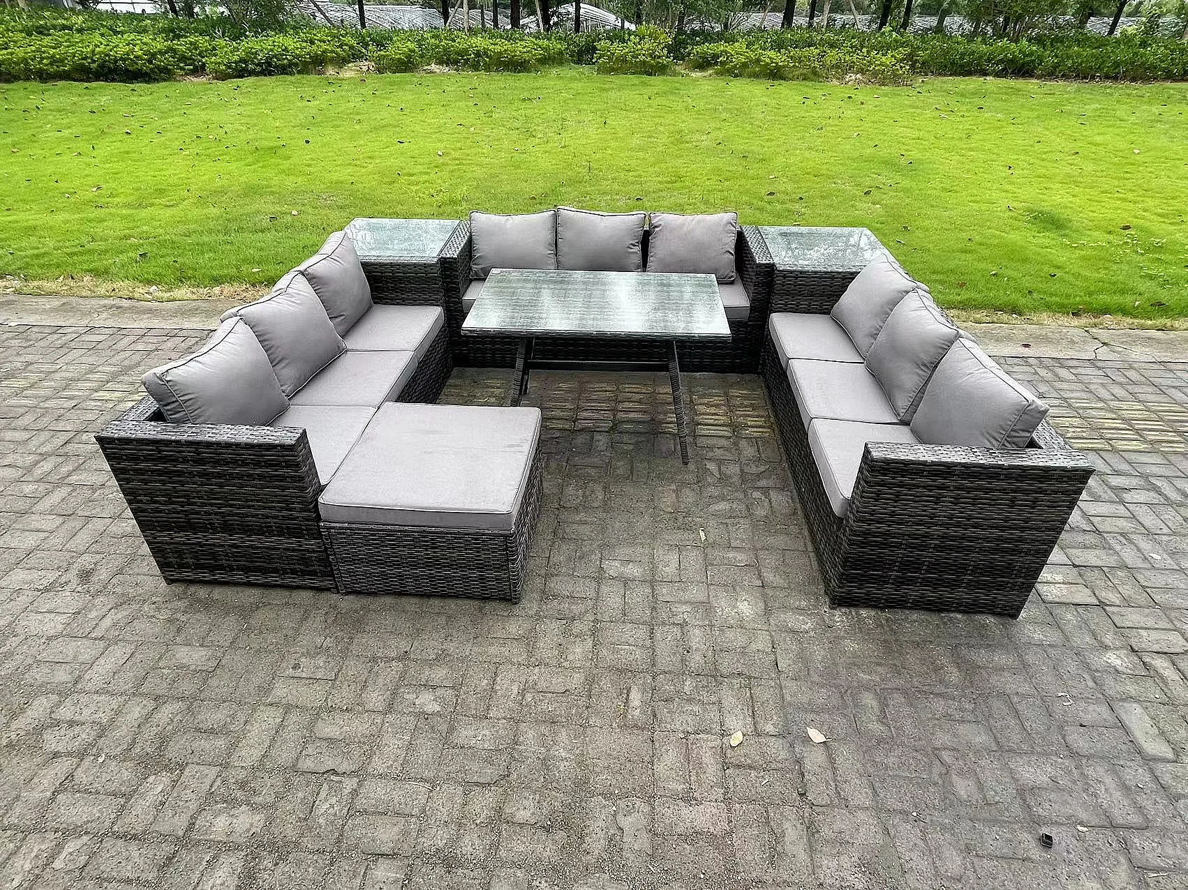 10 places Ensembles de salons de jardin avec Table à manger 2 Tables d'appoint Grand tabouret Gris foncé mixte