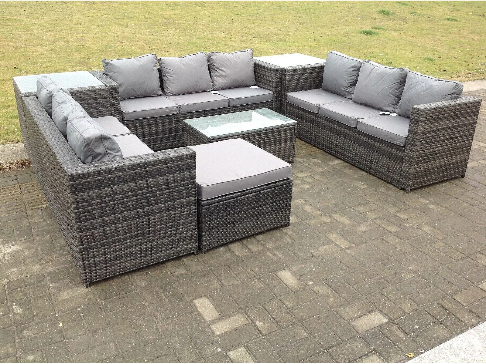 10 places Meubles de Jardin en rotin ave Canapé Table basse Tabourets 2 Table d'appoint Mélange gris foncé