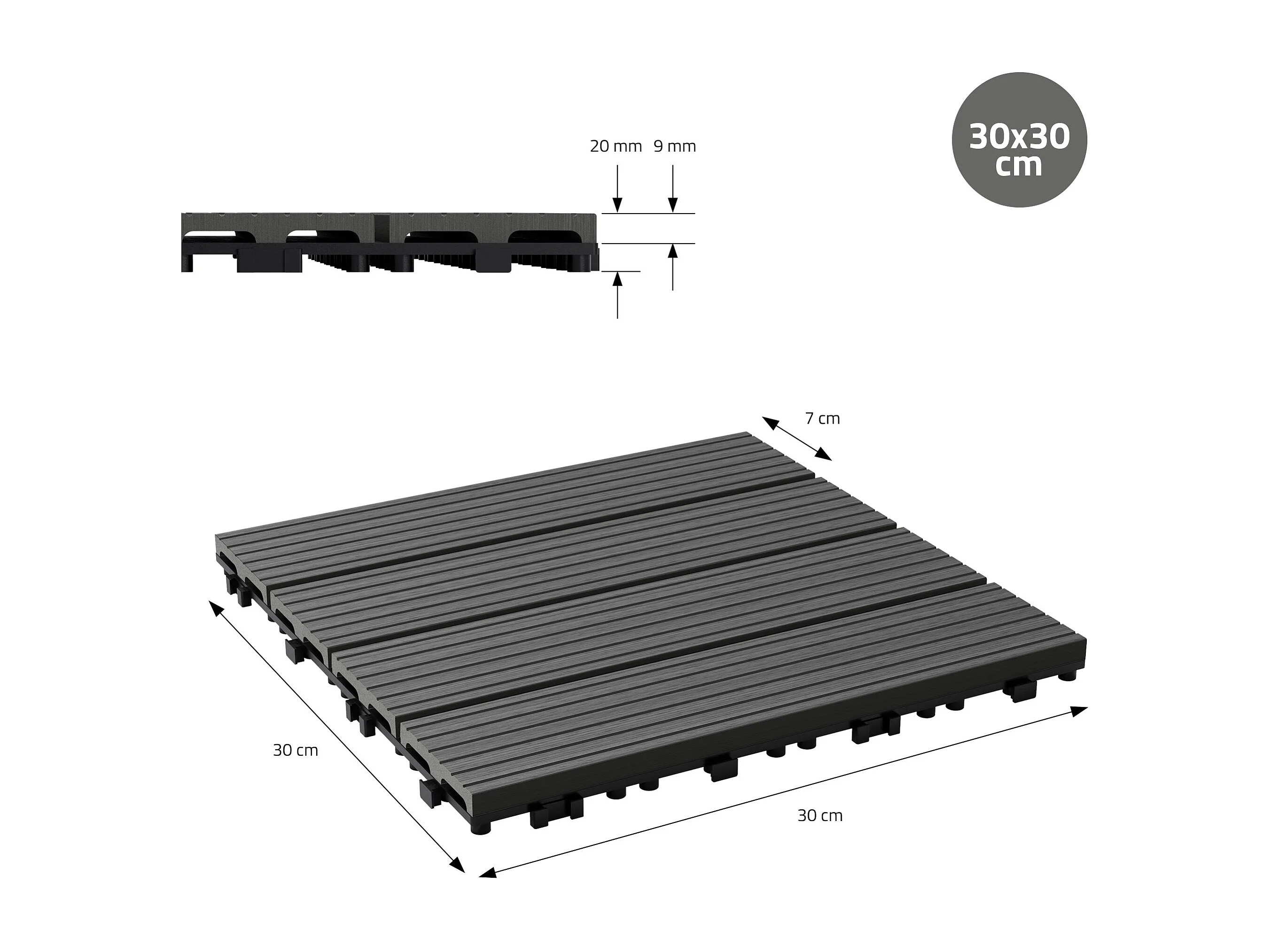 11x Carreaux de terrasse WPC 30x30cm carrelage revêtement de sol anthracite ECD Germany