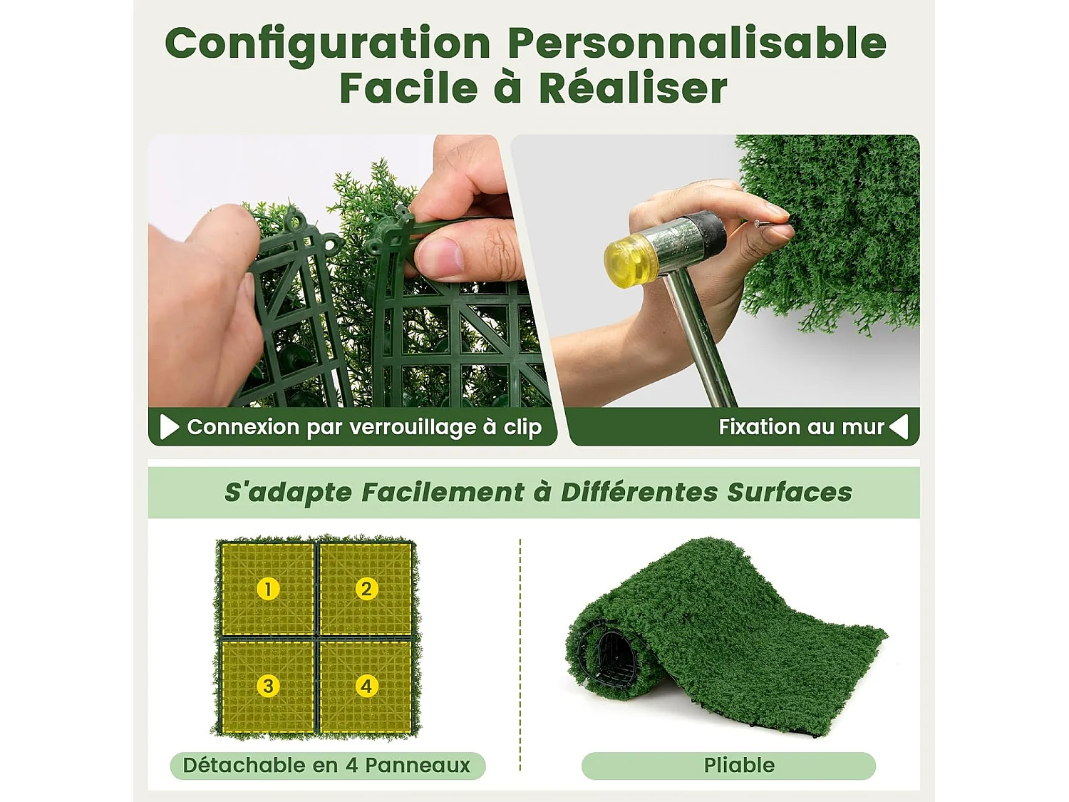 12 Panneaux Muraux en Gazon Artificiel 50 x 50 cm, Panneaux de Buis avec Surface Texturée Incurvée et Epaisseur de 7 cm, Haie d'Intimité