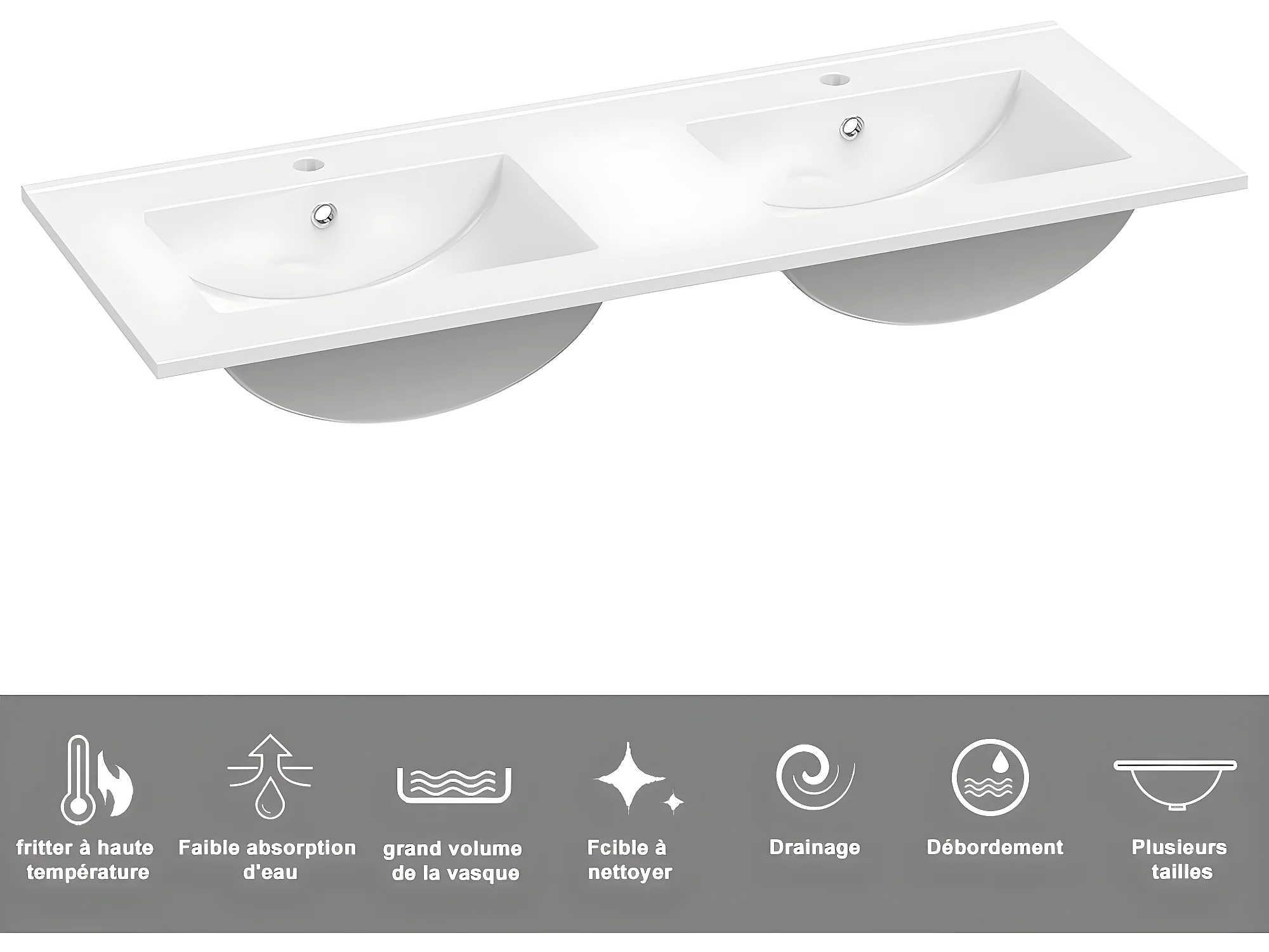 Meuble salle de bain natural avec 2 portes à une fermeture amortie avec 2 vasques à suspendre 120x45x40(L*W*H)cm