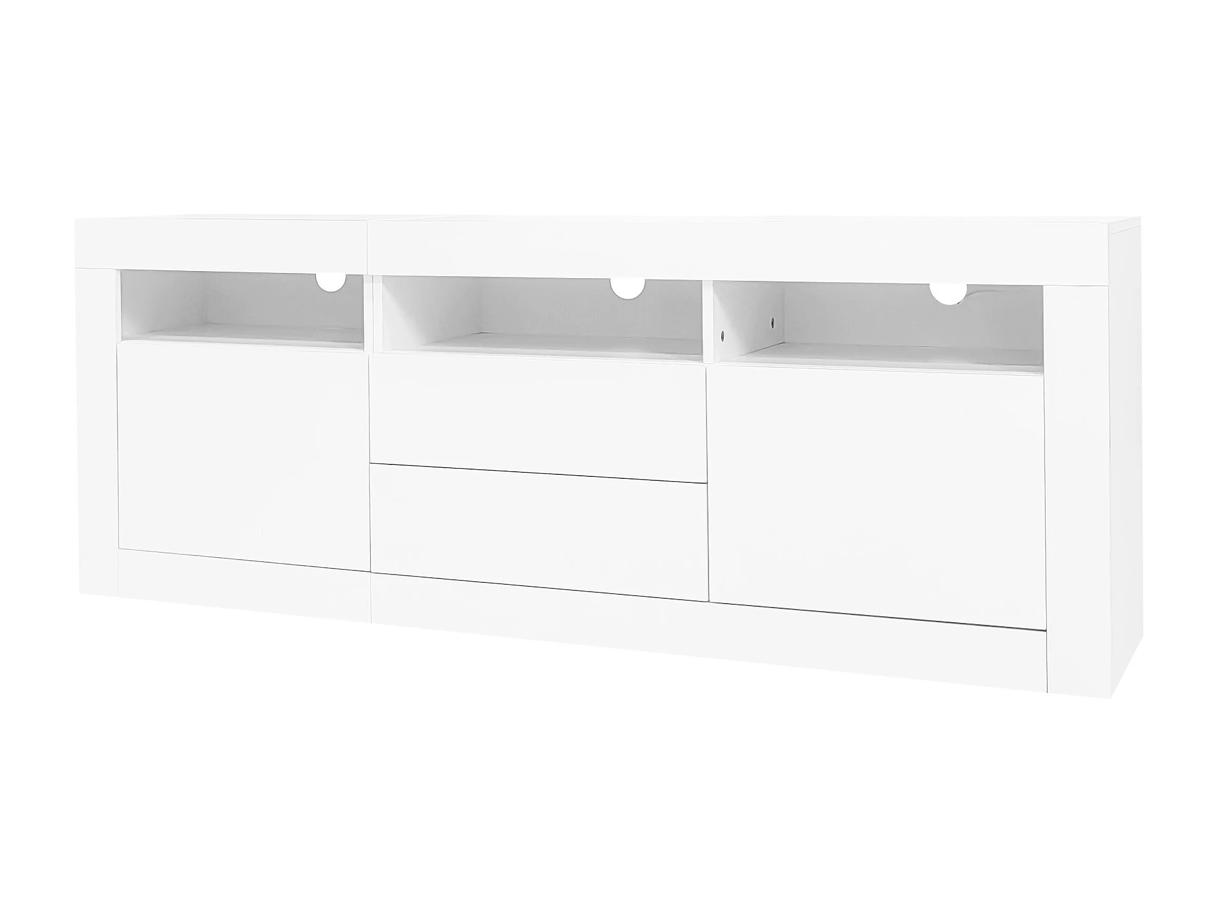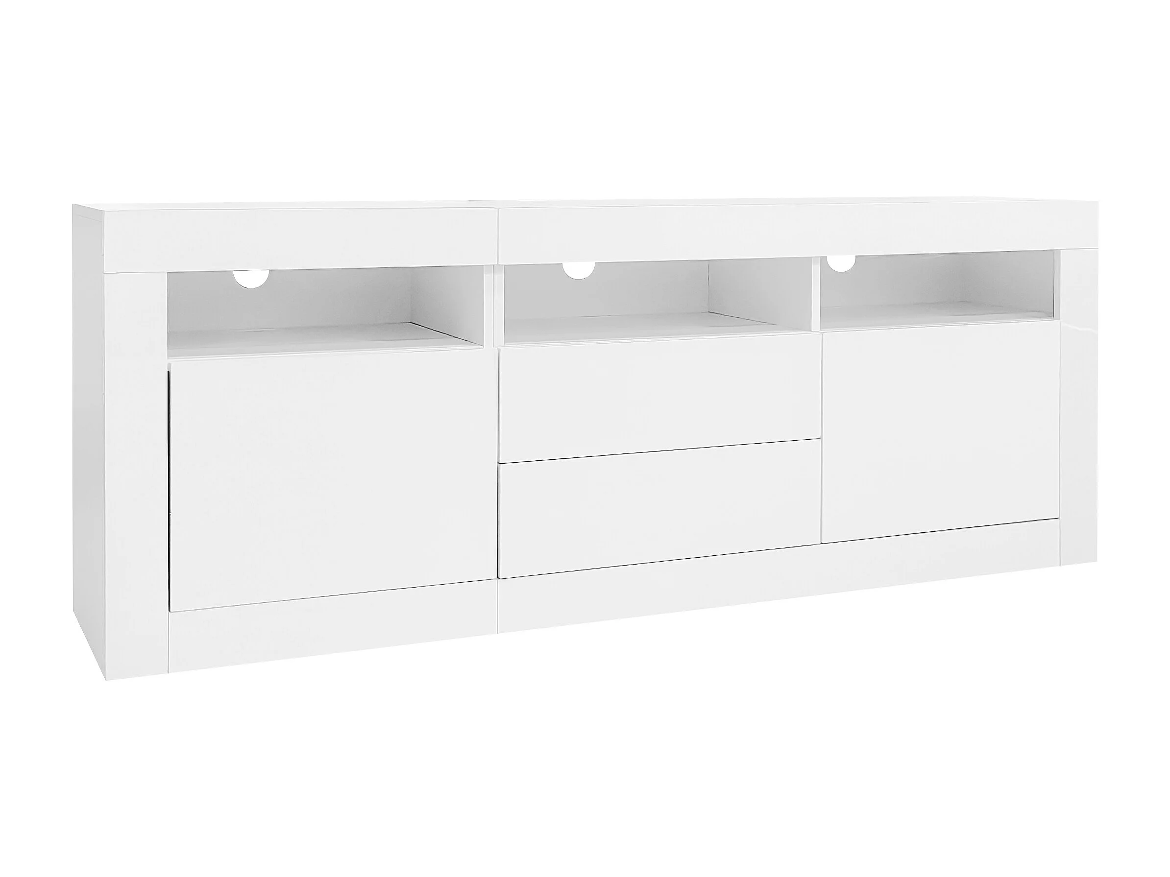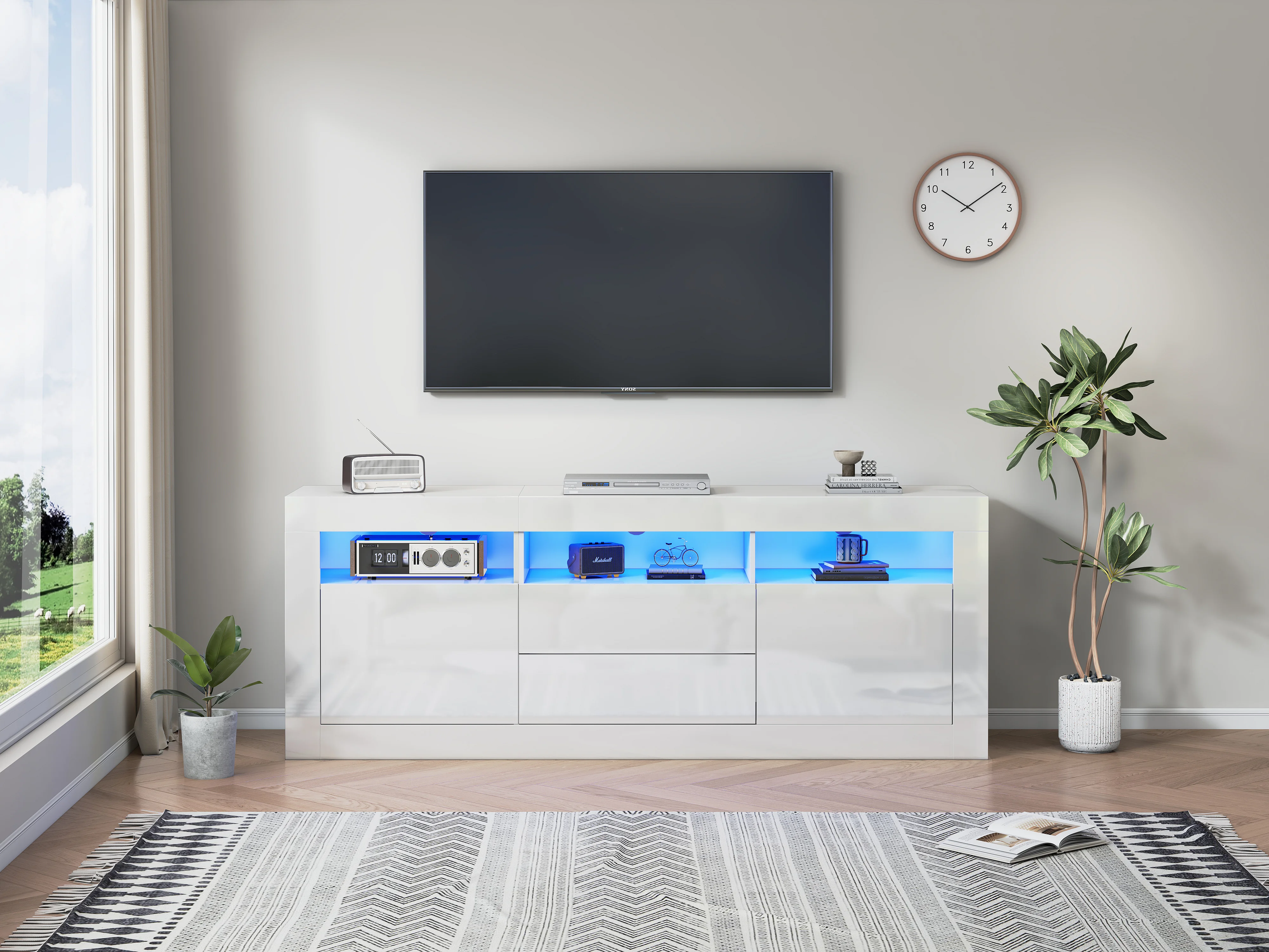 160*35*60cm Armoire de télévision haute brillance avec éclairage LED, 3 compartiments ouverts, 2 portes, 2 tiroirs, Smart App-Steuerung