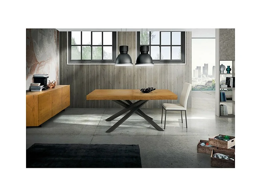 160x90 cm - 260x90 cm table à rallonge en placage de chêne noueux - ARGENTARIO