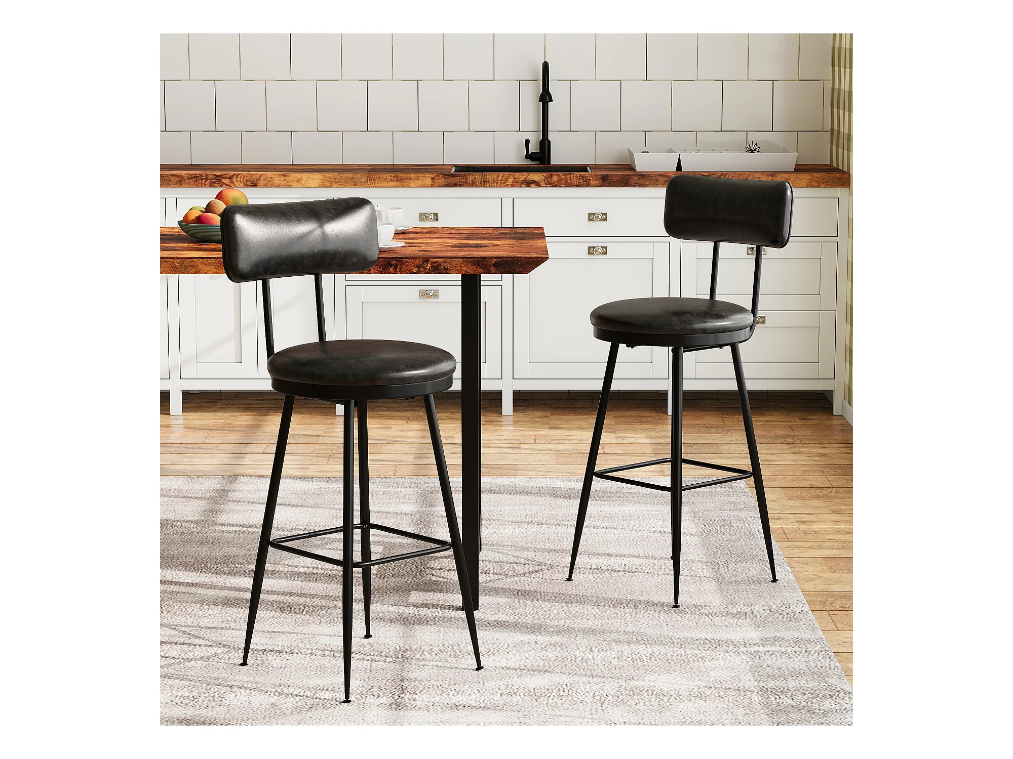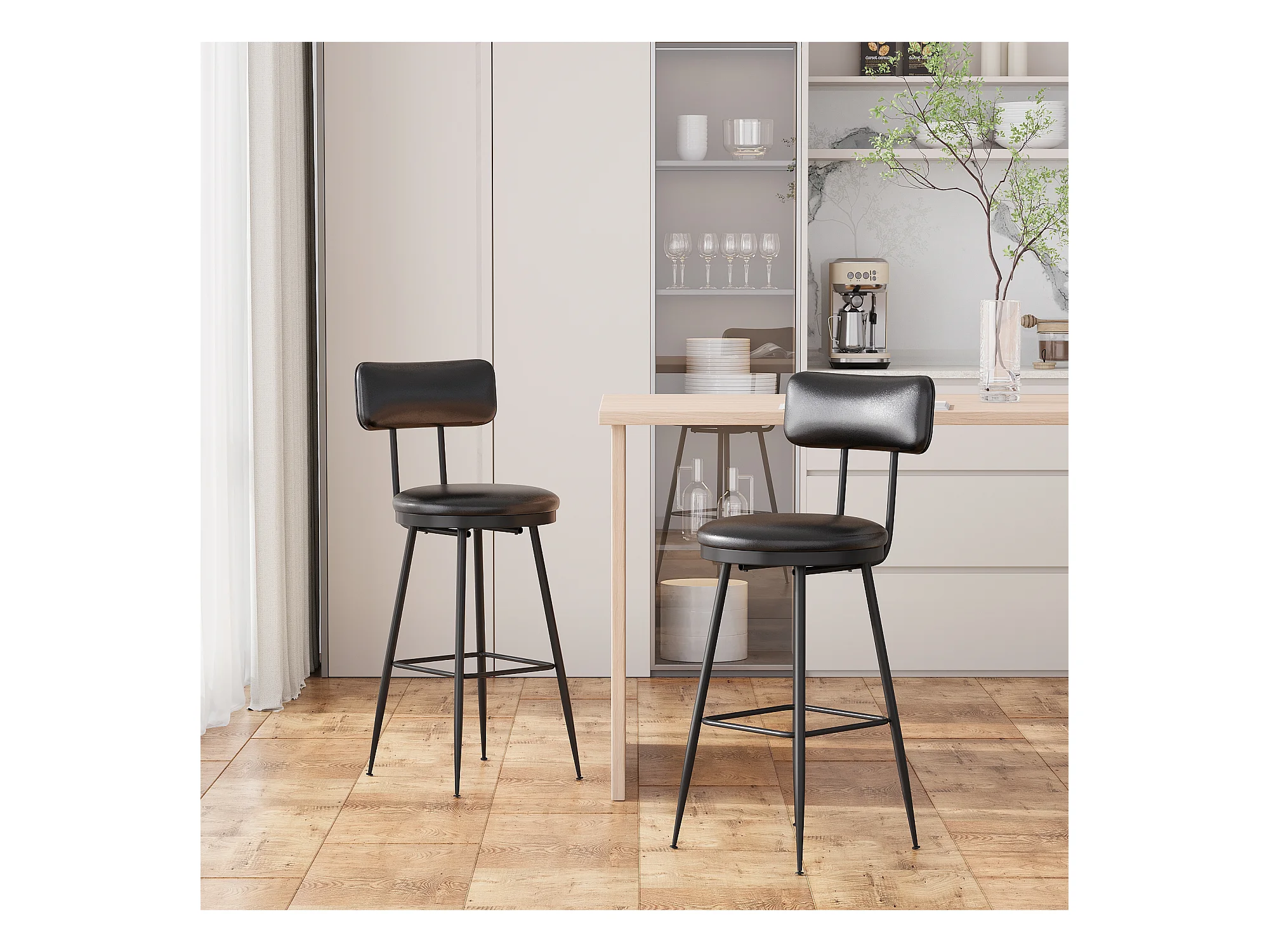 Lot de 2 tabourets de bar, chaises pivotantes à 360° avec dossier, simili cuir, réglables en hauteur
