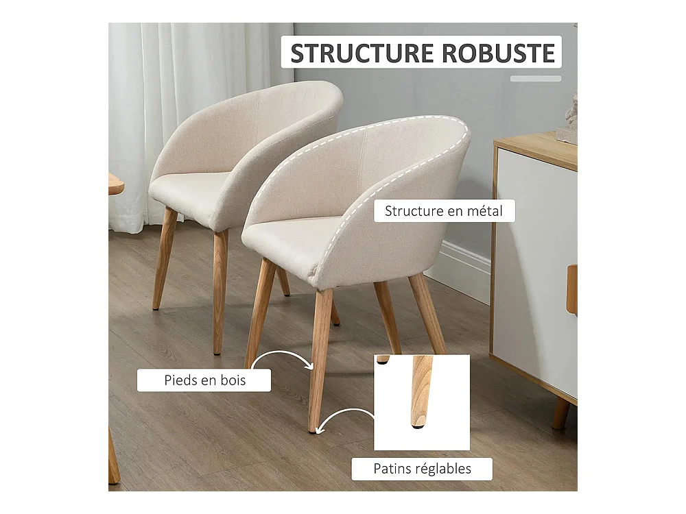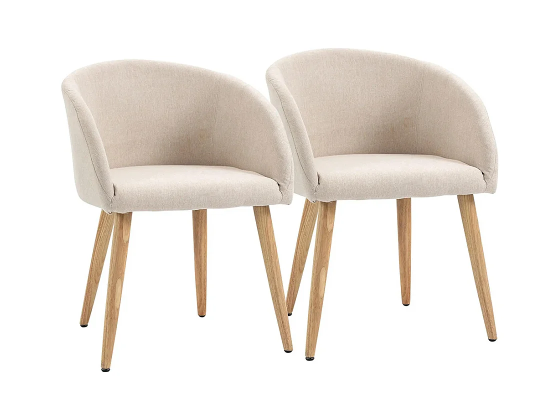 2 chaises de restaurant en bois de caoutchouc - Assise, dossier et accoudoirs ergonomiques, couleur lin