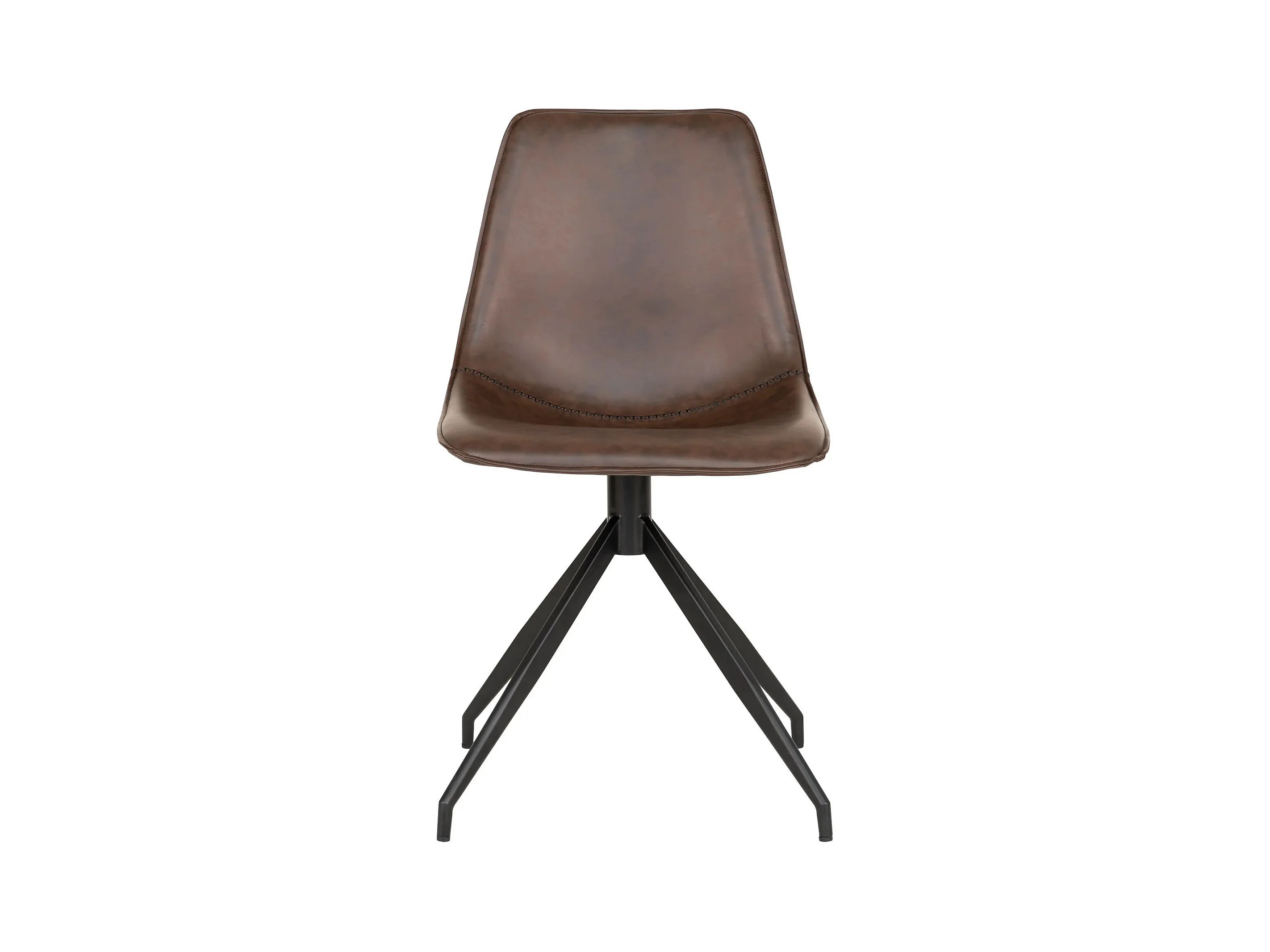 2 chaises de salle à manger en cuir synthétique avec pivot marron foncé et pieds noirs