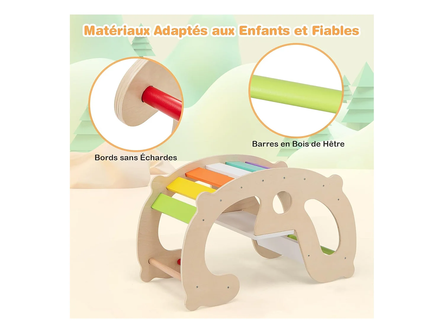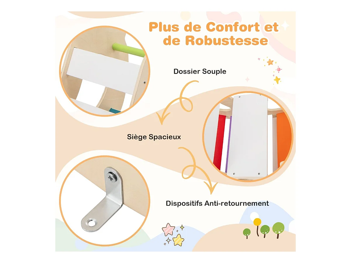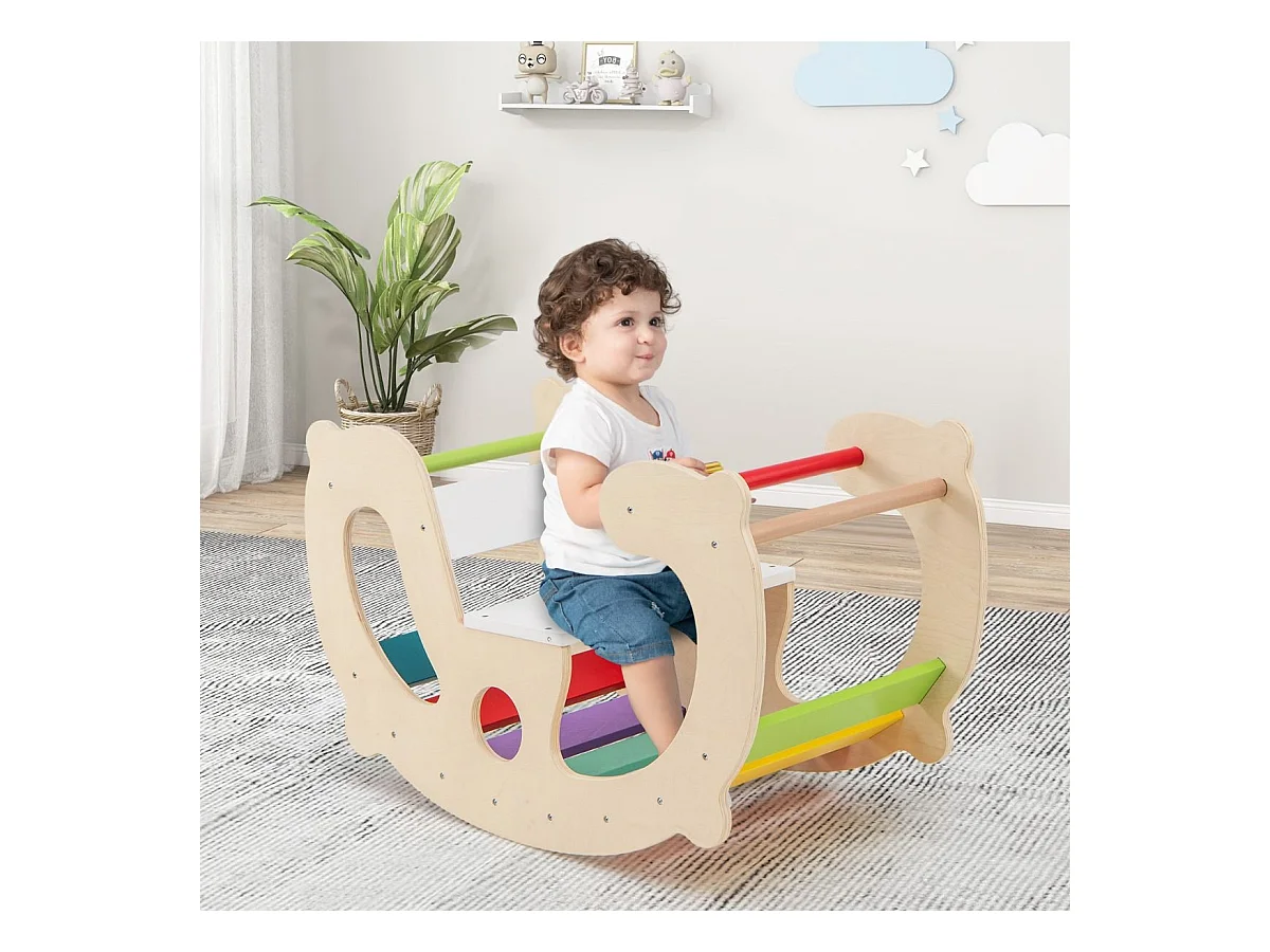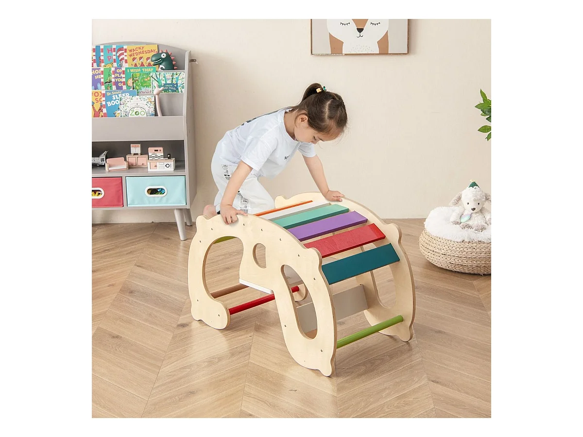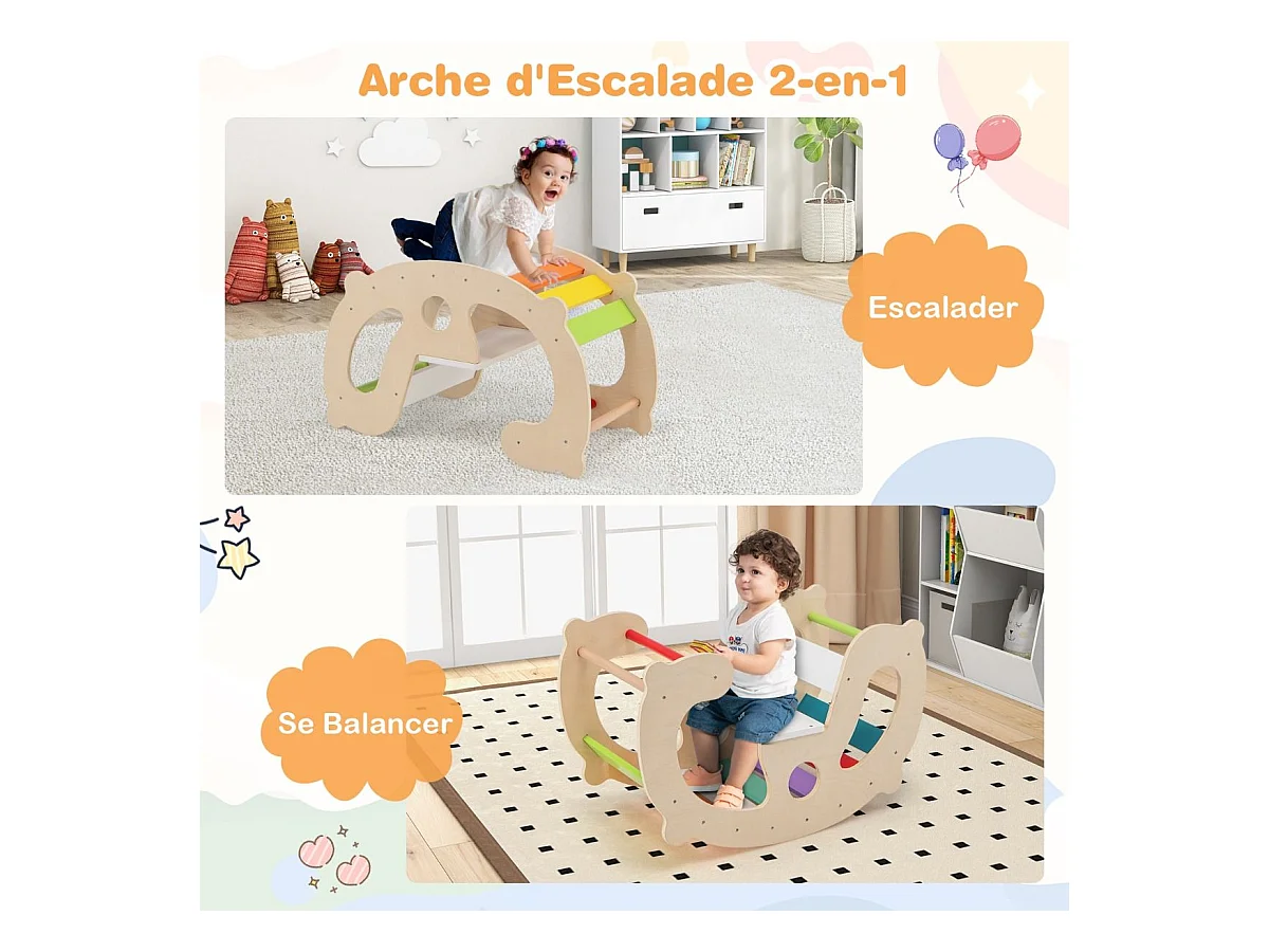 2 en 1 Chaise à Bascule Enfants avec Siège et Dossier Lisses, Arche d'escalade Montessori en Bois avec Poignée & Coins Arrondis, Charge 50kg pour Enfants de 1 an+
