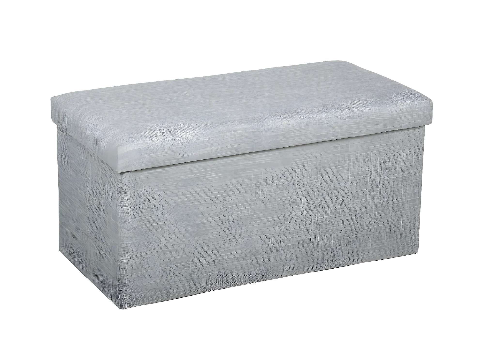 Coffre Pouf Pliable Gris Motif Blanc Gris