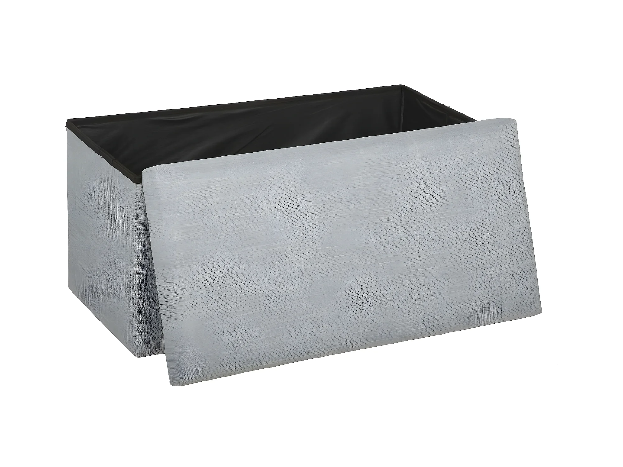 2 en 1 Pouf pliant double et coffre de rangement Gris clair aspect Lin 76.6 x H 37.5 cm