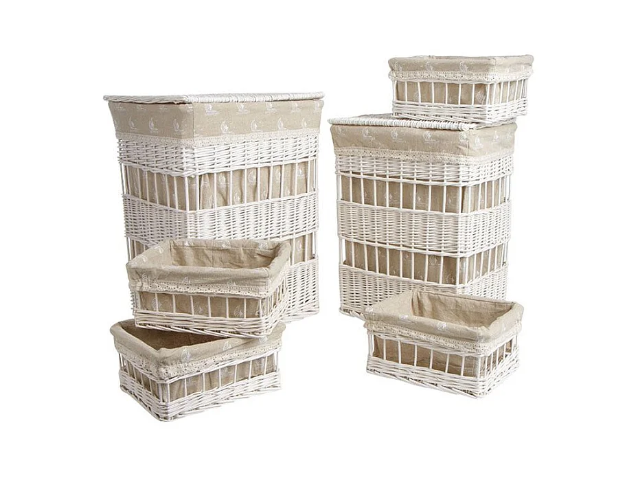 2 paniers à linge + 4 corbeilles en osier (Lot de 6)