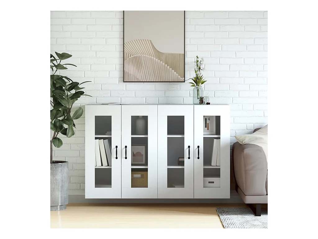 2 pcs Armoires murales blanc bois d'ingénierie OIU84724