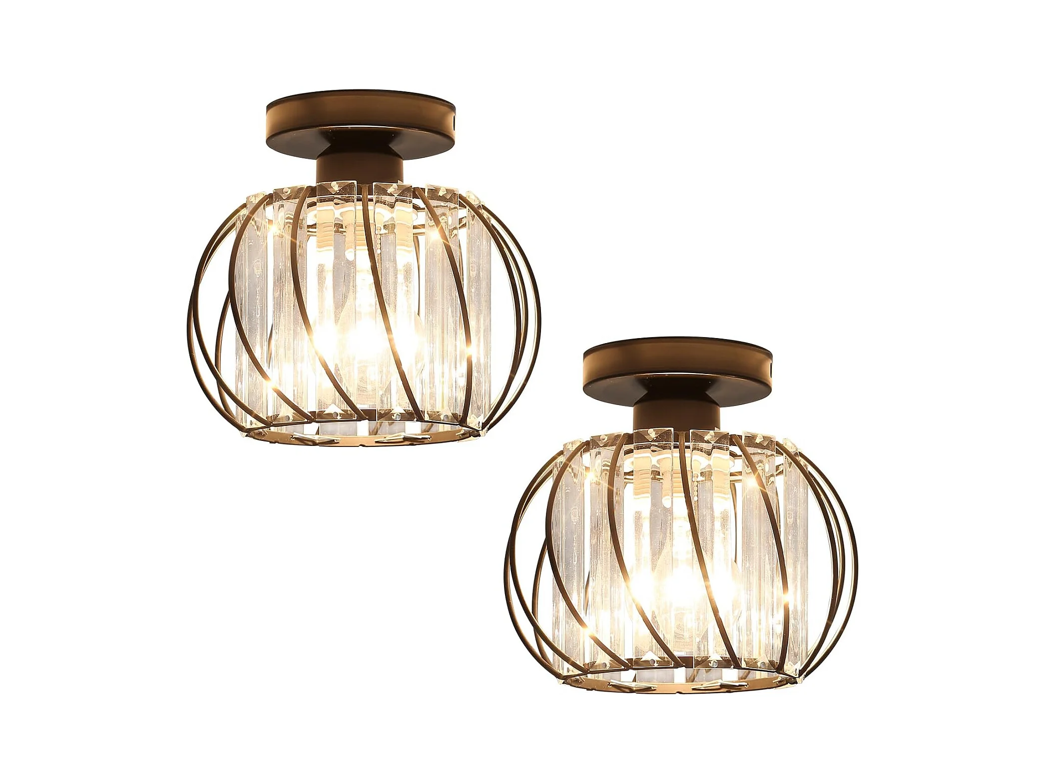 2 pièces Plafonnier en Cristal Moderne E27 Base Cage Lampe de Plafond Pour Cuisine Salle à Manger Chambre Couloir Entrée Balcon Noir (Ampoule non incluse)