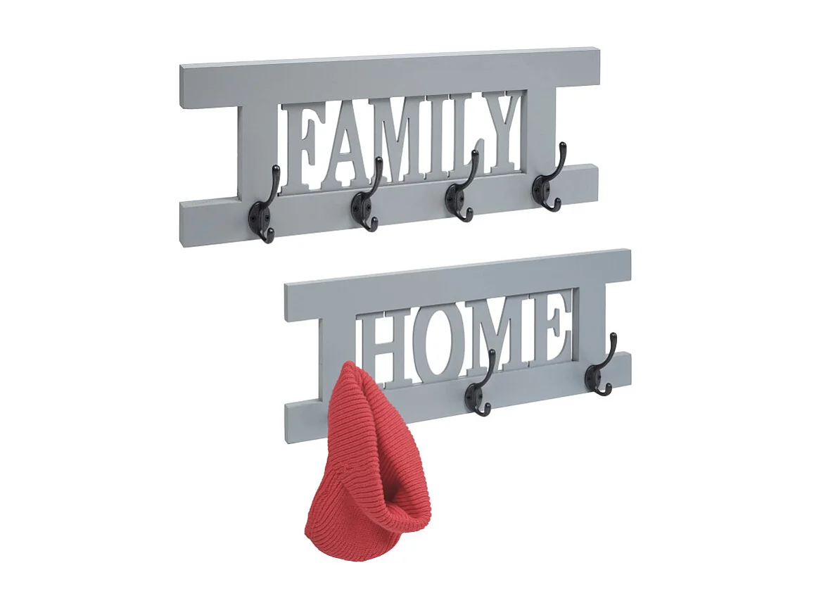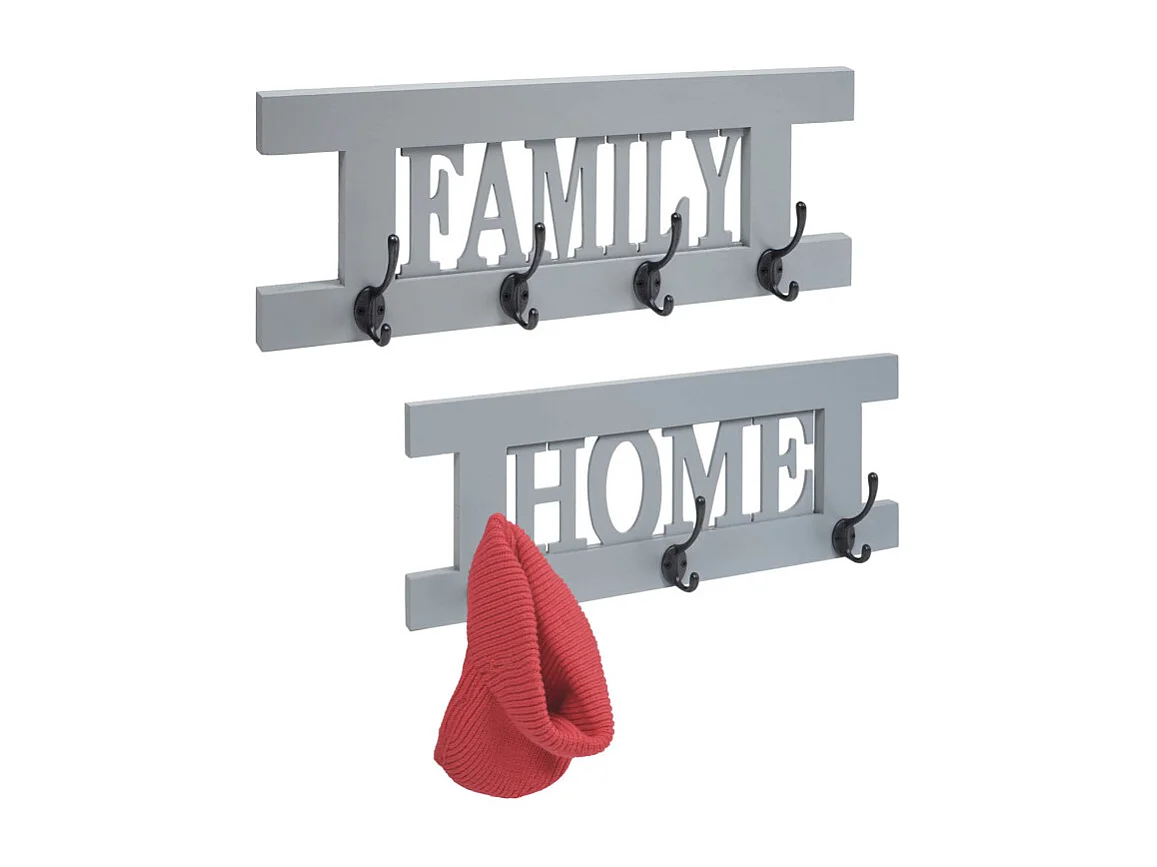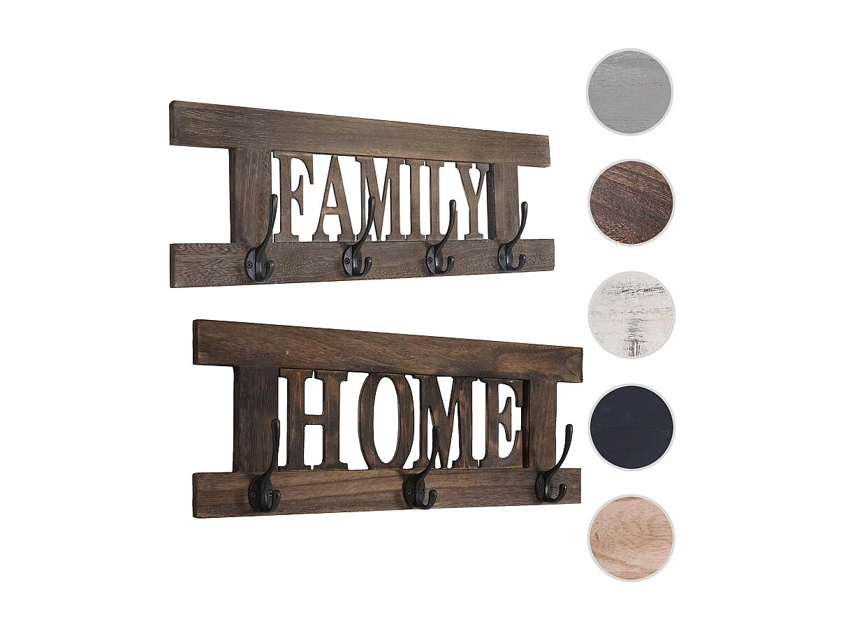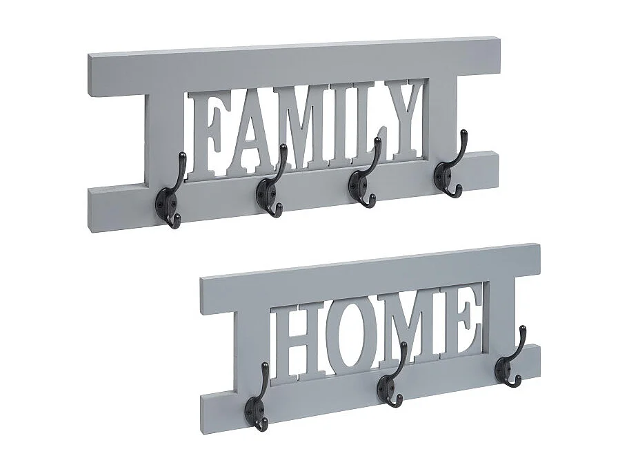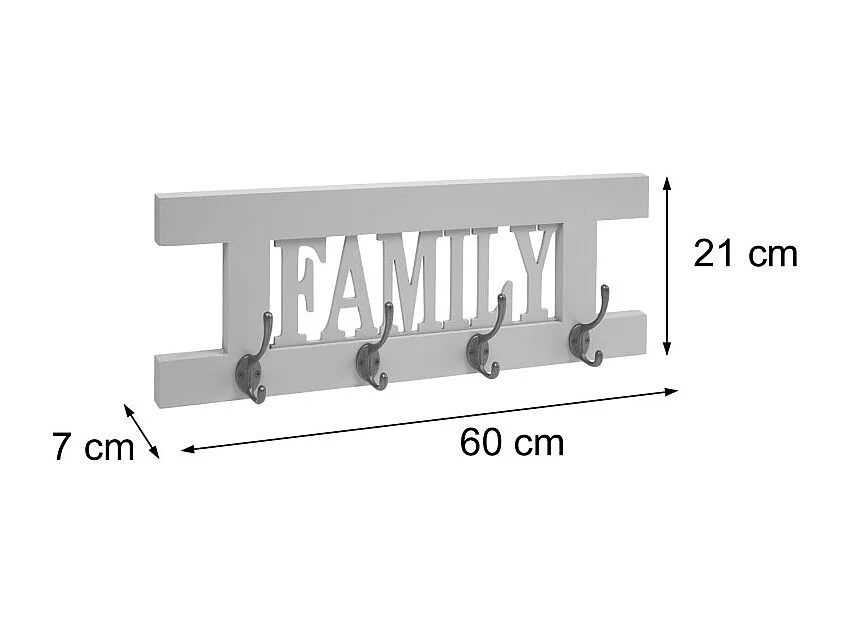 Portemanteau mural HWC-C89, FAMILY, 8 crochets, 60x90cm - gris foncé shabby