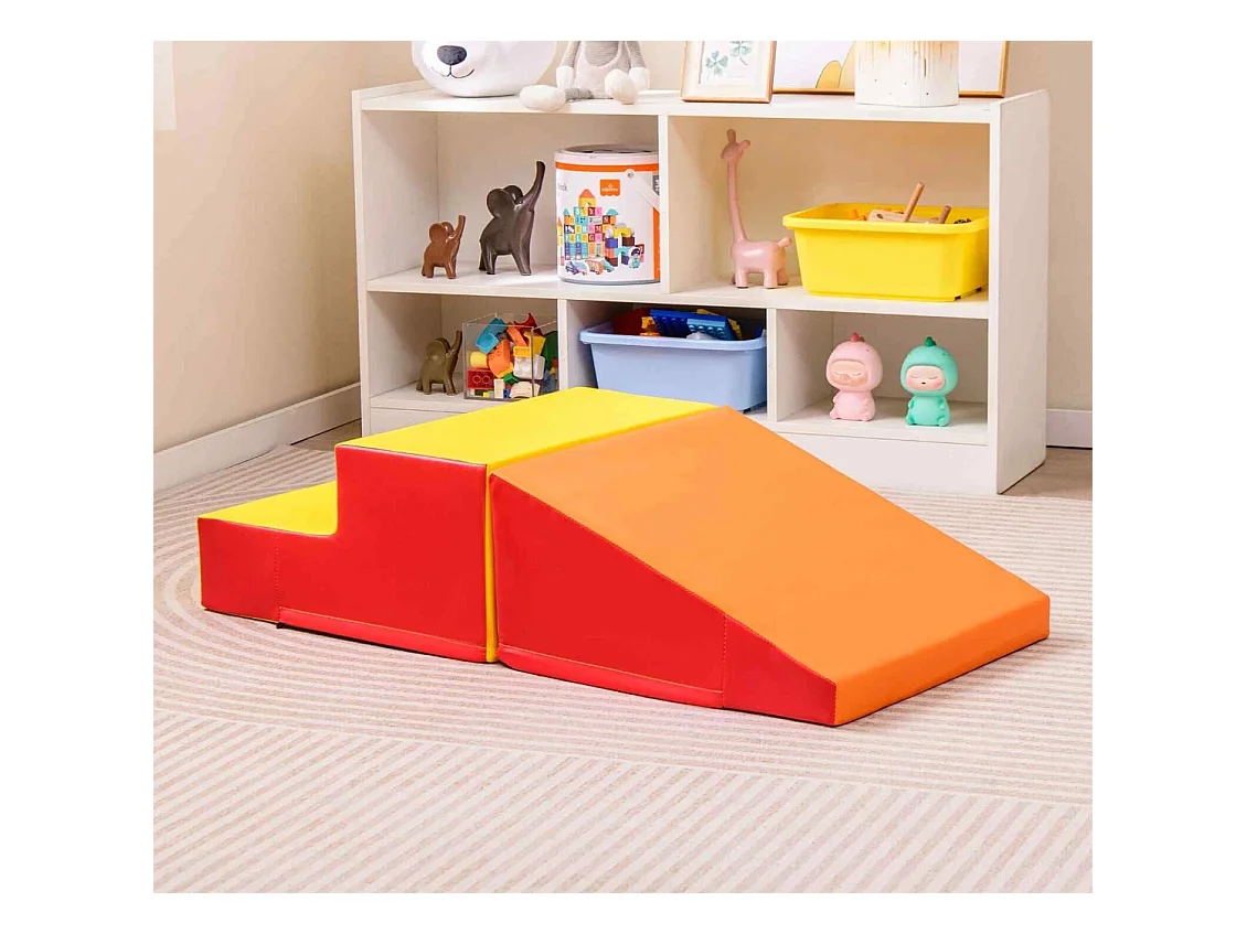 2PCS Parcours Motricité Bébé en Mousse avec Housse Amovible, Module Motricité Bébé avec Marche & Toboggan, Jouets Éducatifs pour Enfant (Orange+Jaune)