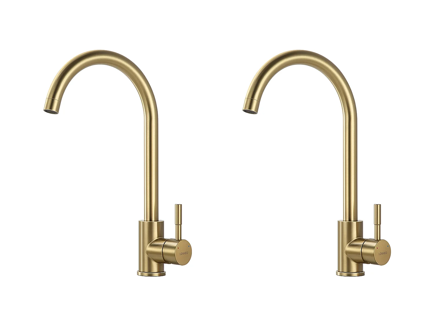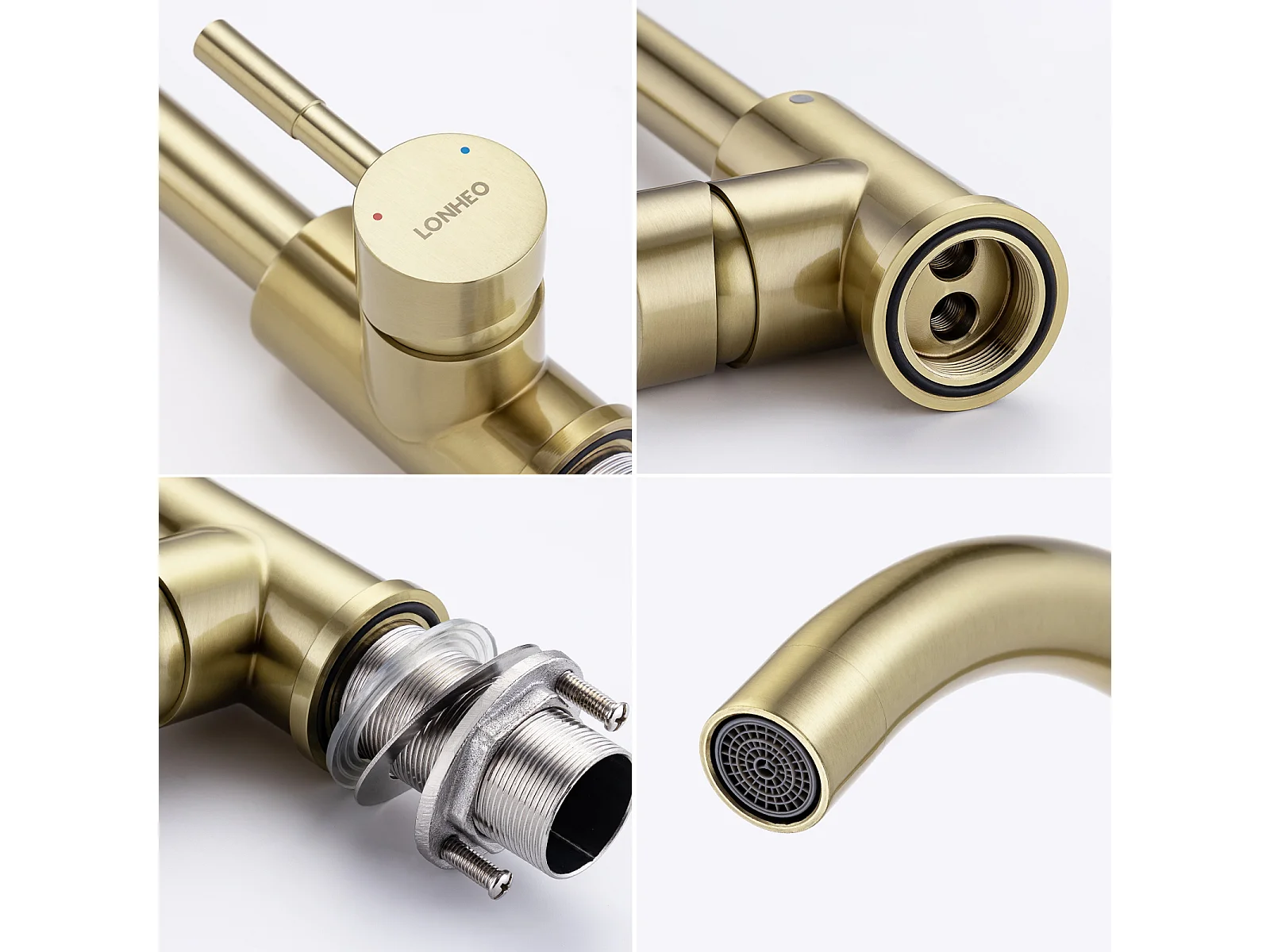 Lonheo Max 2pcs Robinet Cuisine,Mitigeur Evier Flexible Rotatif 360°,Mitigeur Cuisine Inoxydable avec Aérateur Démontable, Doré Brossé,EU Modèle