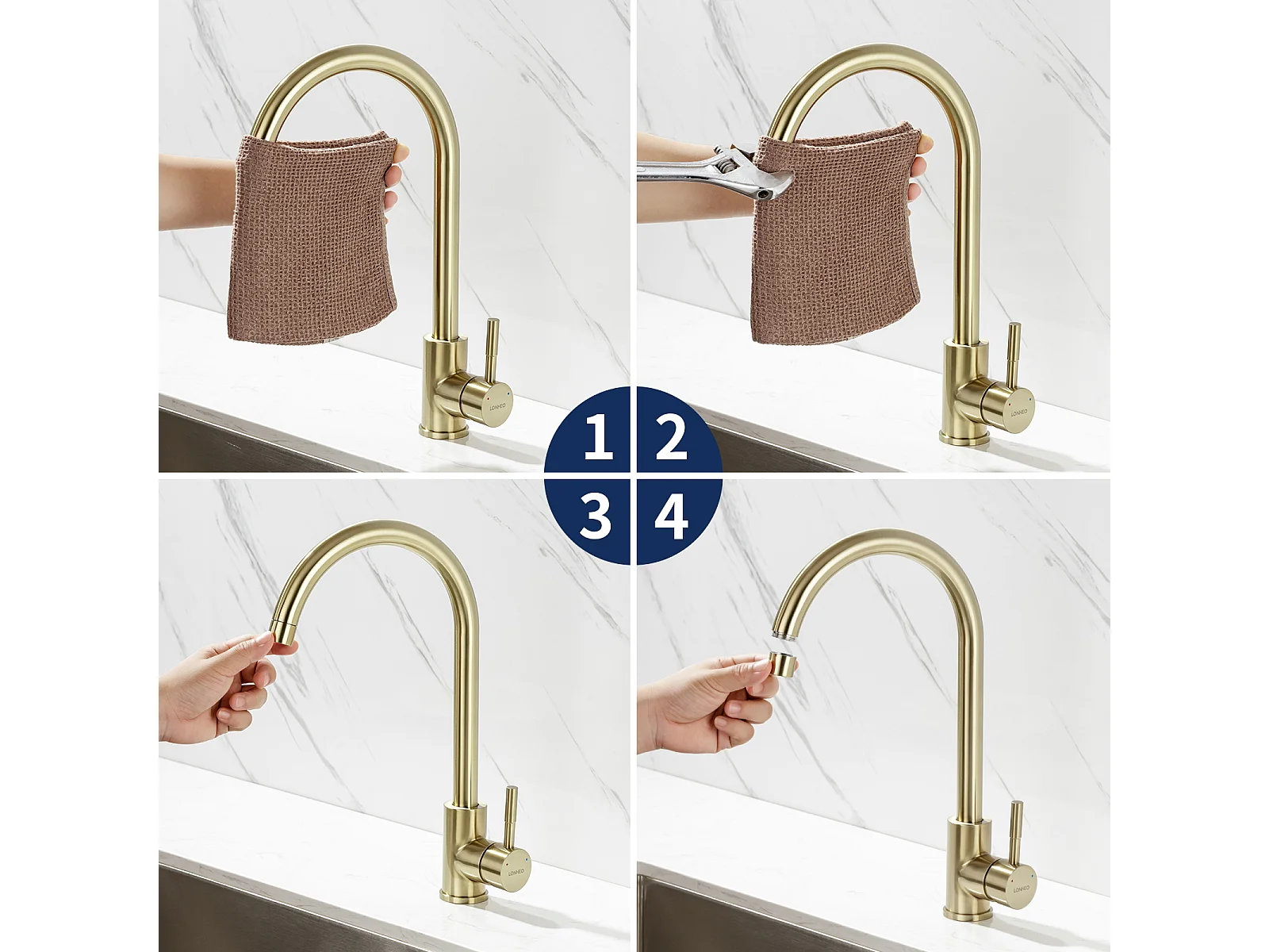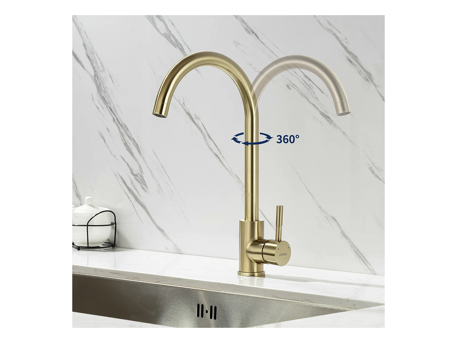 LonheoMax Mitigeur Cuisine,Robinet Evier Flexible Rotatif 360°, Mitigeur Cuisine Inoxydable avec Aérateur Démontable,Doré Brossé,EU Modèle,EU Modèle