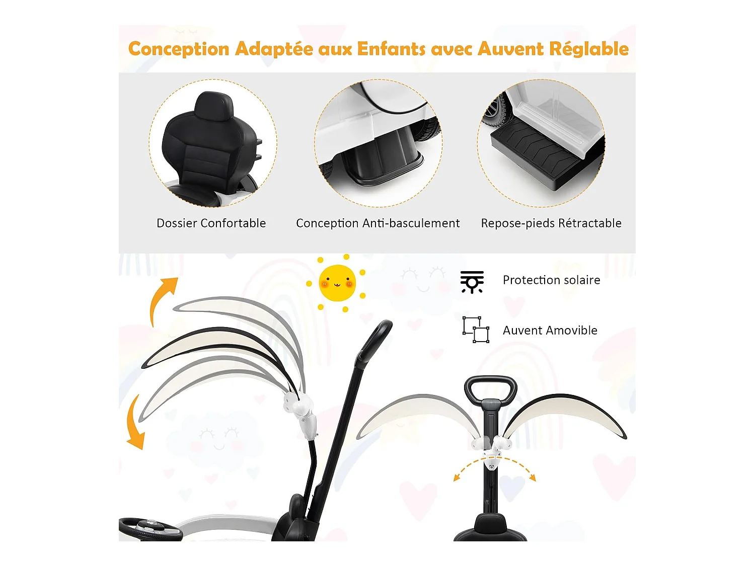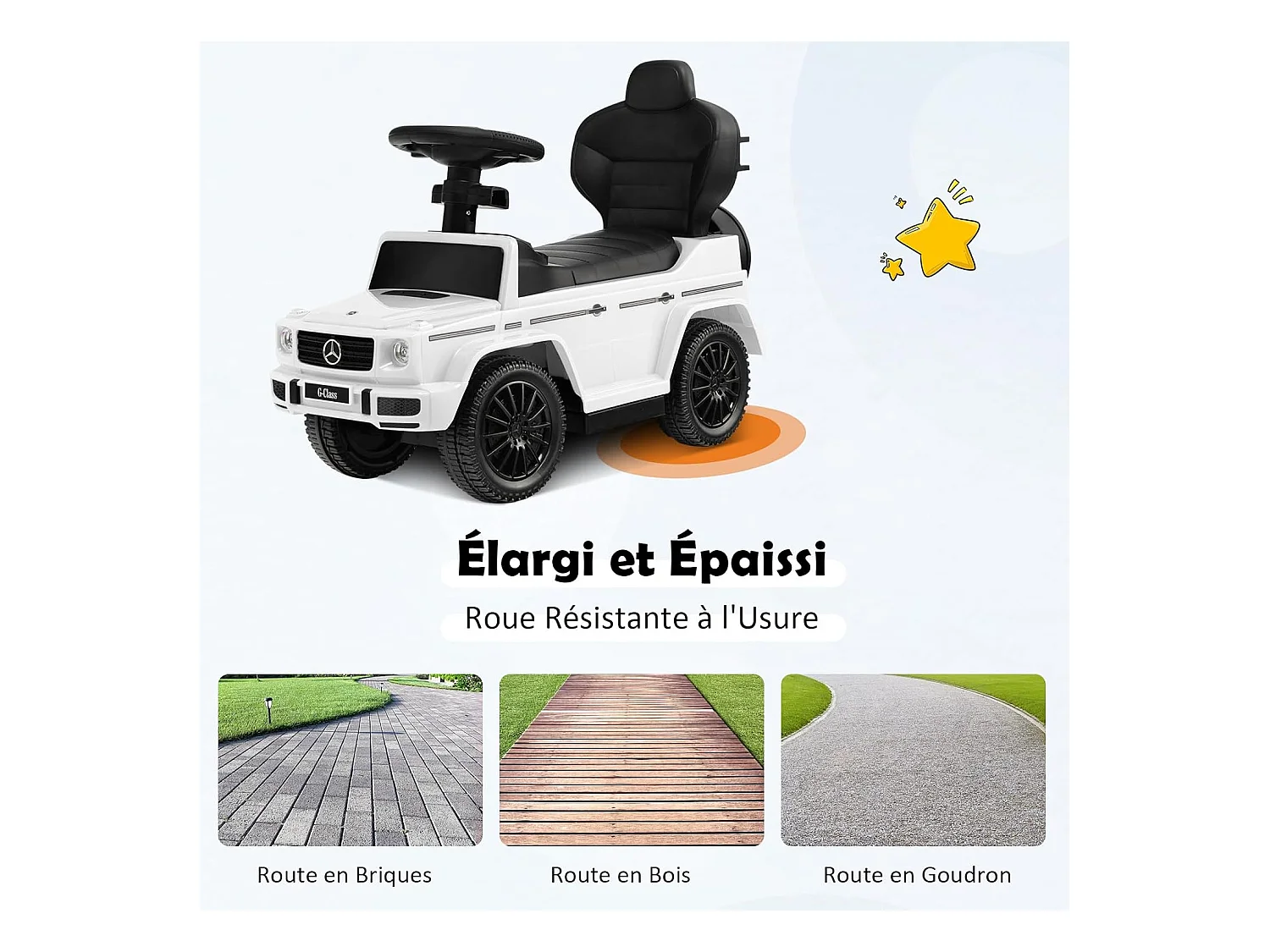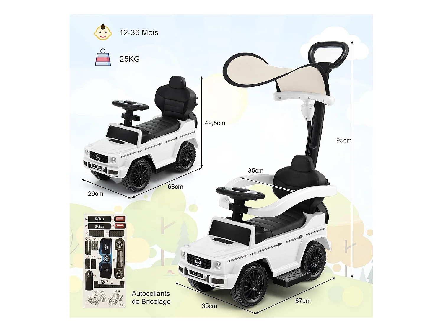3 en 1 Mercedes-Benz Porteur Enfant avec Poignée Détachable & Auvent Amovible, Voiture à Pousser Bébé avec Volant & Klaxon, Charge 25kg pour 1-3 Ans (Blanc)