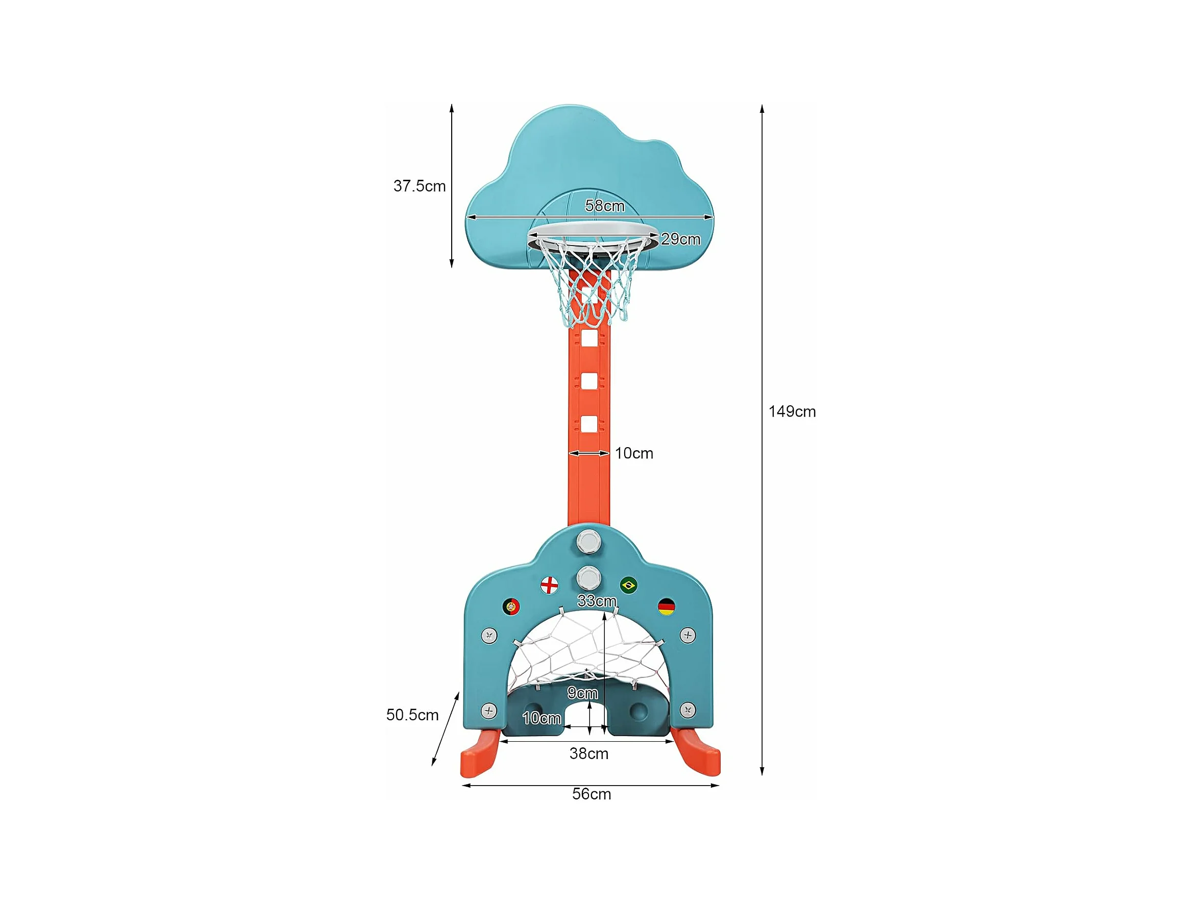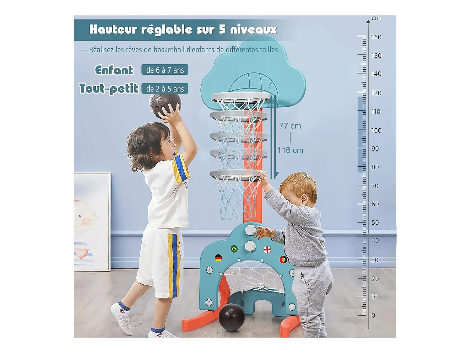 Ensemble de Basket 3-en-1, Hauteur Ajustables de 110cm à 149cm, Inclus Jeu de Basketball, Football