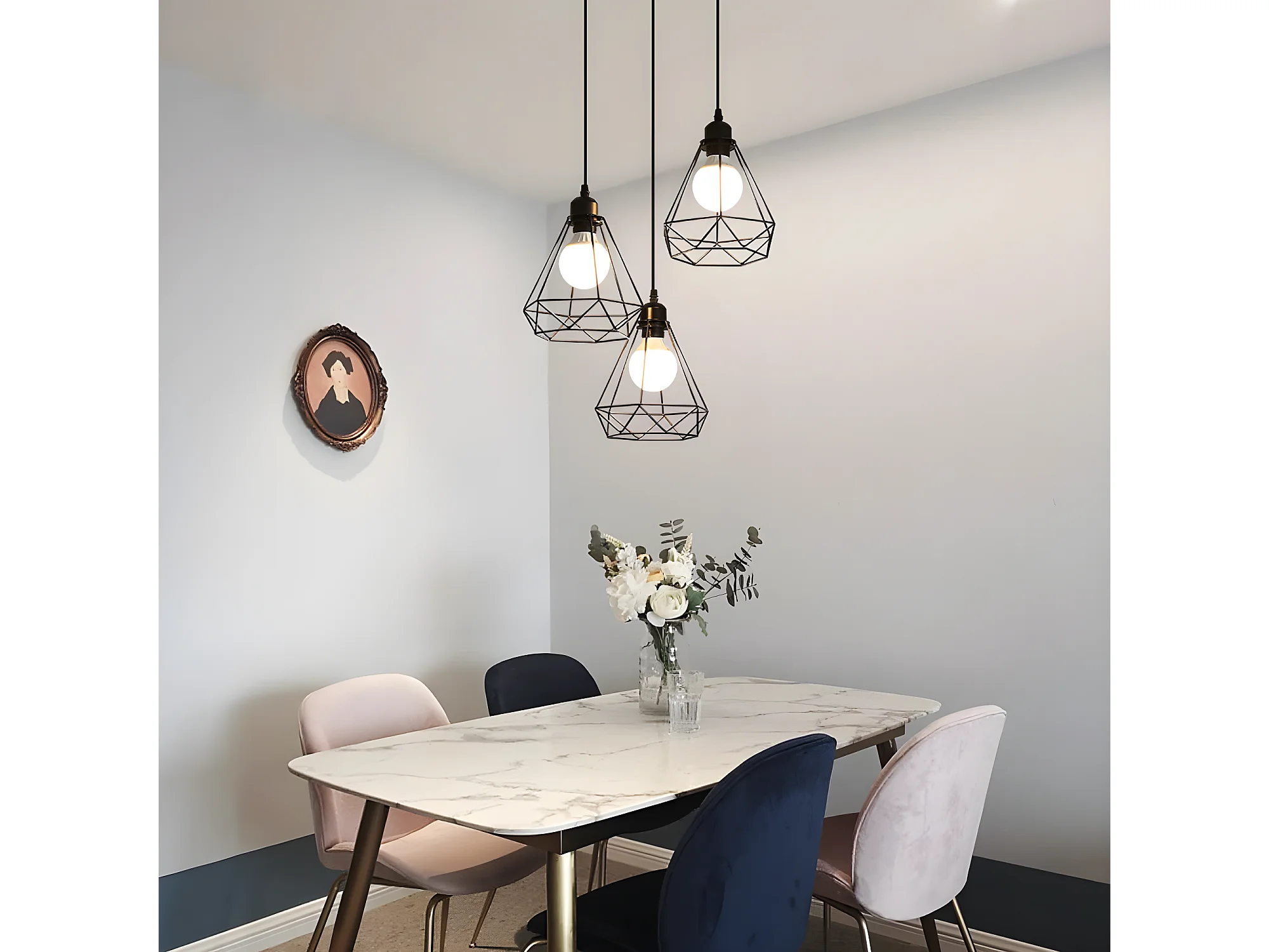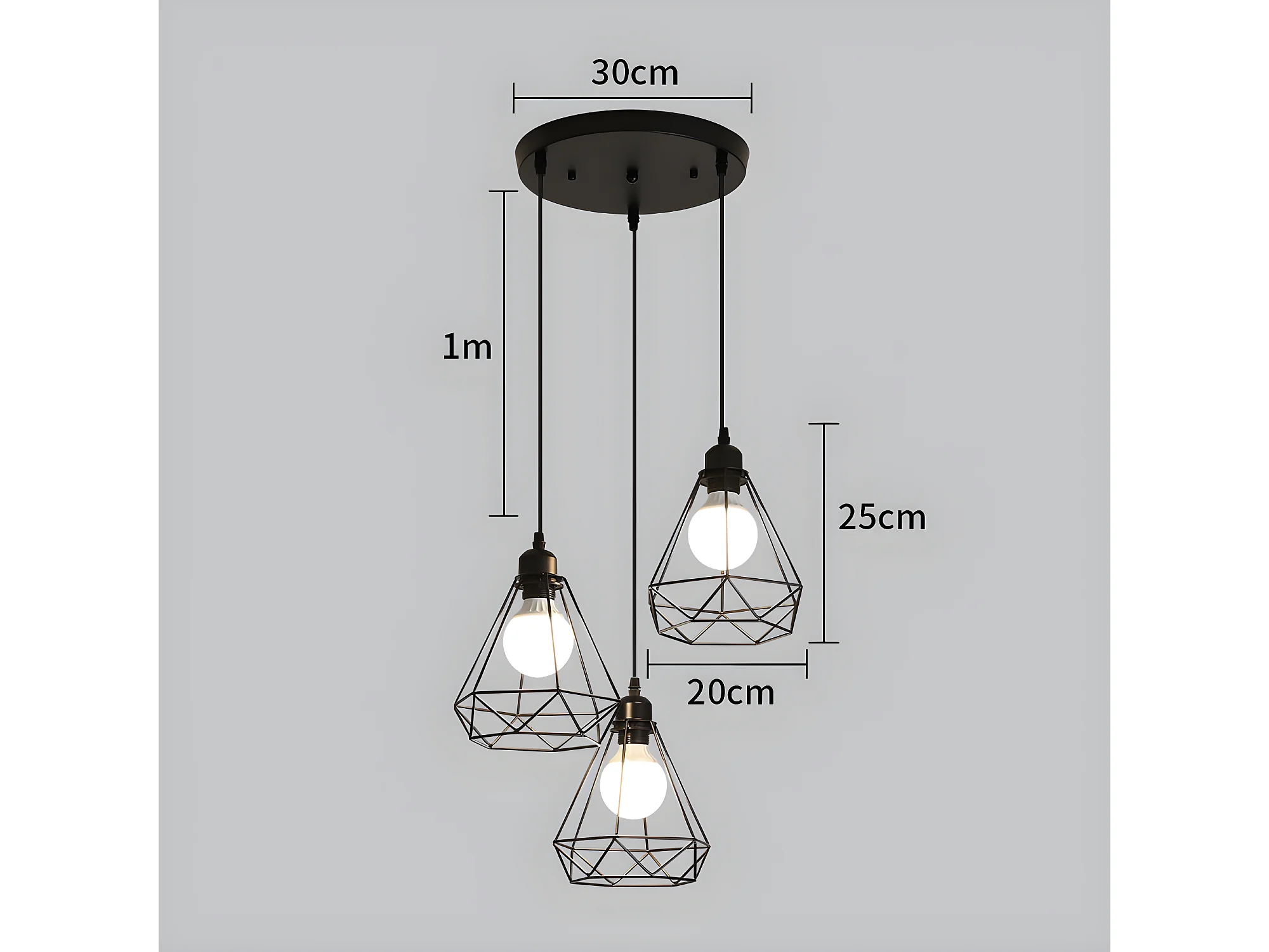 3 lampes suspension industrielle vintage, lustre noir, 145*43*43cm, en métal, sans ampoules E27