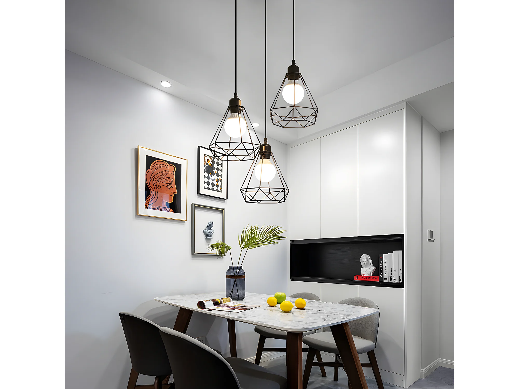 Suspension lustre et plafonnier blanc