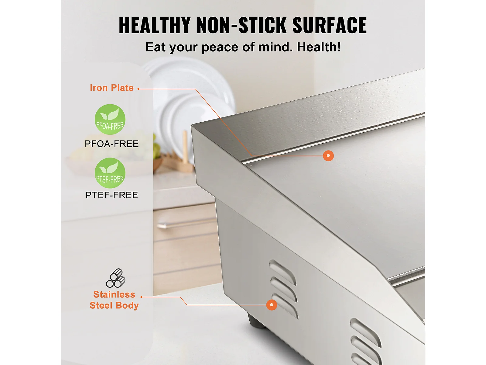 Plancha Électrique SucceBuy 2000 W, Plaque de Cuisson Électrique Commerciale, 122 ℉ - 572 ℉