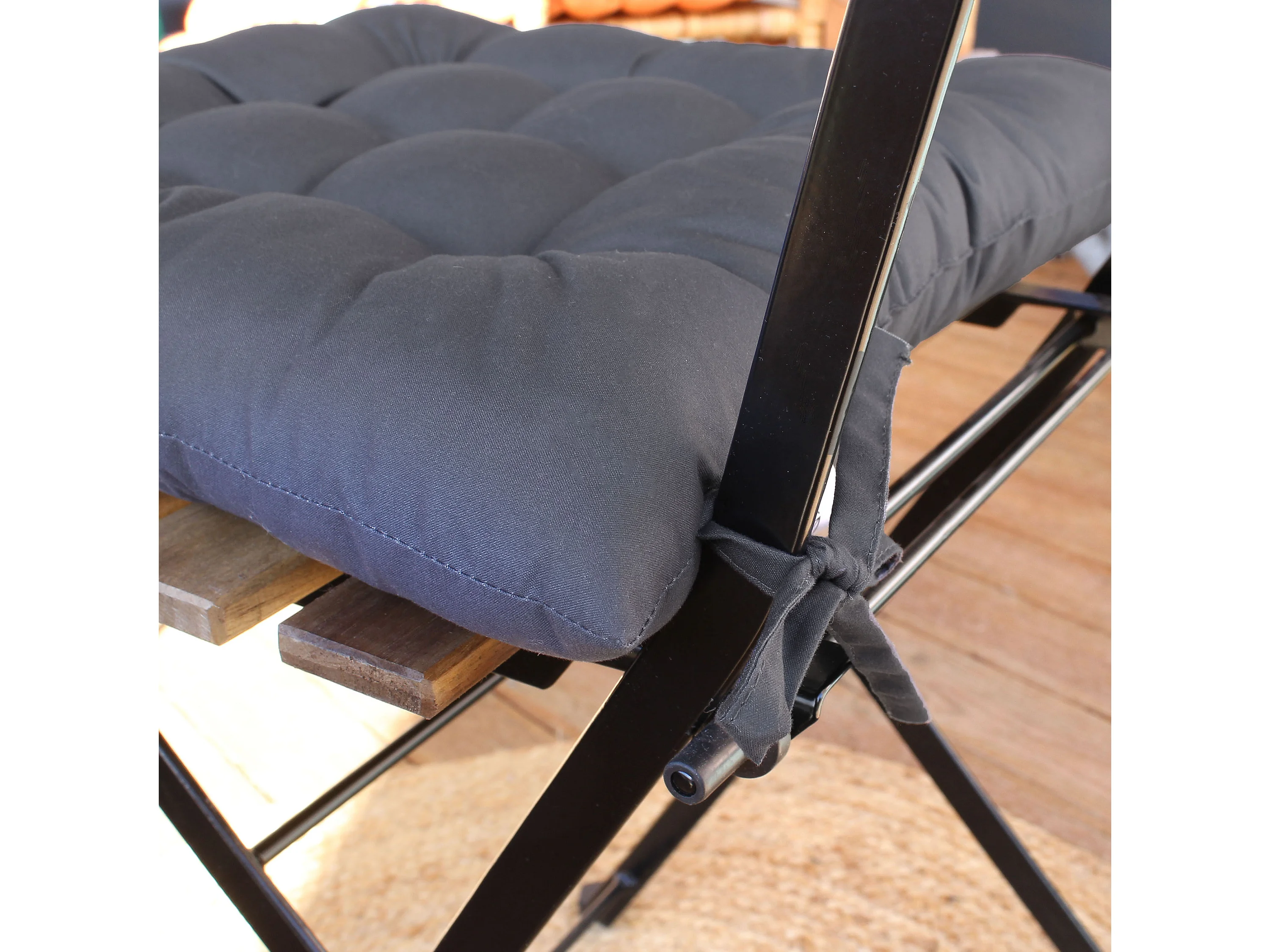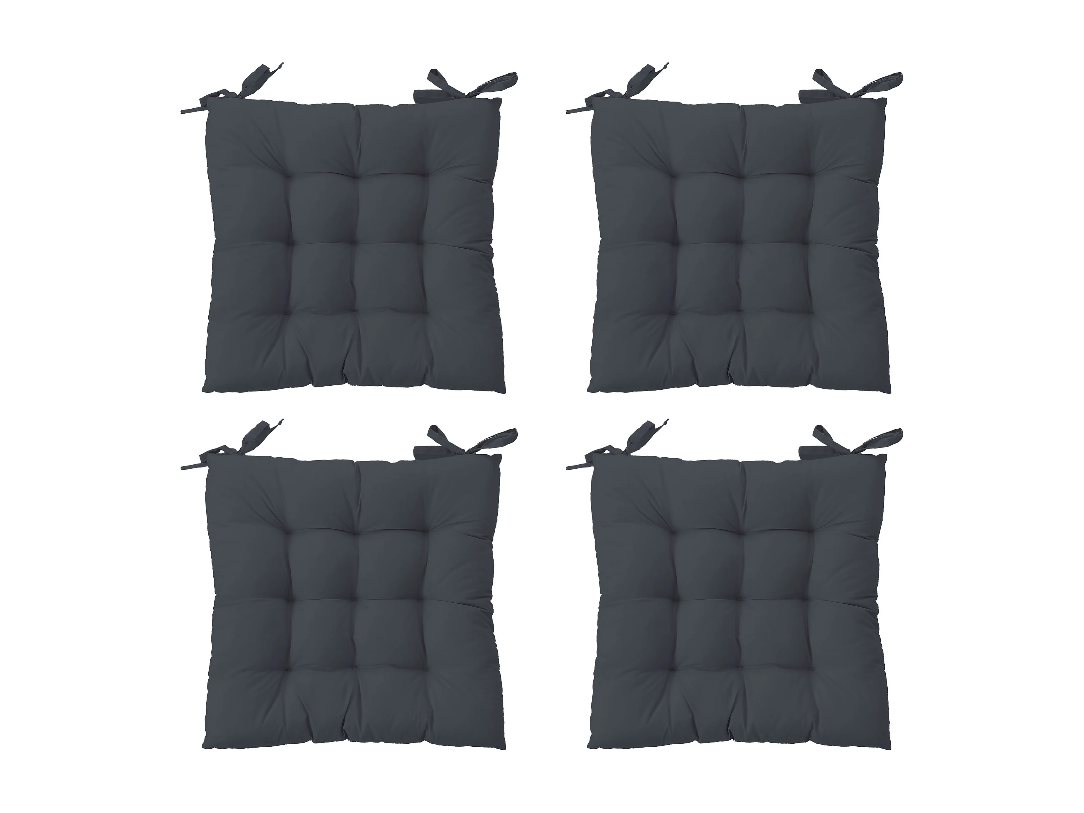 Lot de 4 galettes de chaise à rabat, 40x40 cm, gris foncé, avec nouettes, 100% polyester certifié oeko-tex, collection Basic