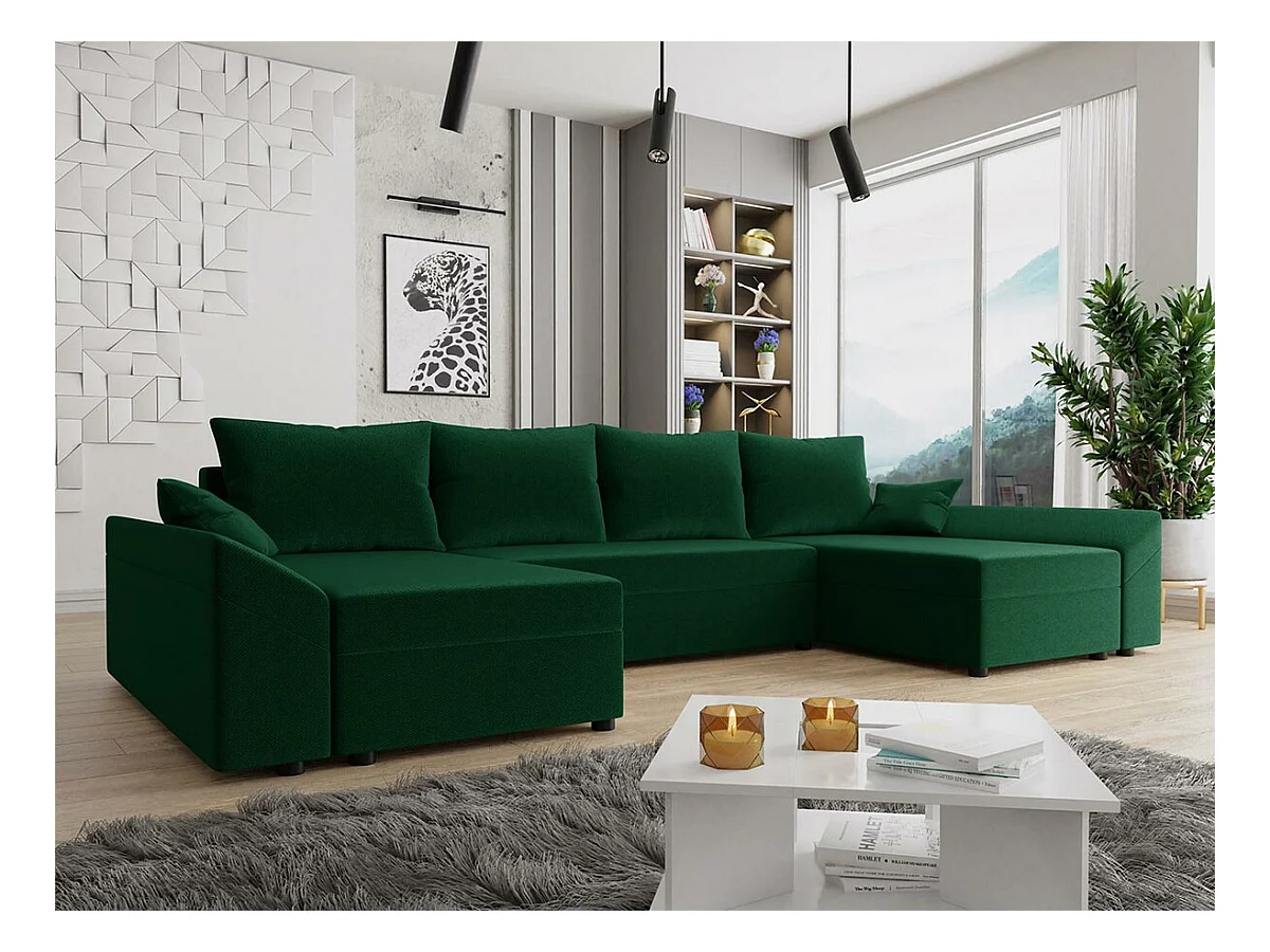 Canapé d'angle Memphis 131, Vert, Fonction de couchage, Boîte de literie, 317x140x82cm
