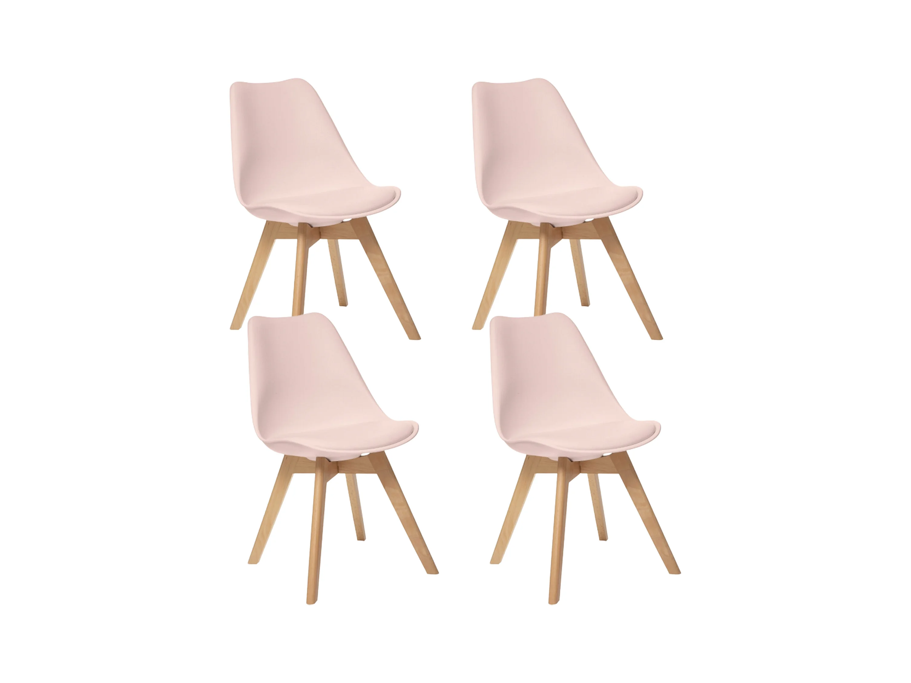 4x chaise "baie", rose bâton, jambes de hêtre, 82x53x48