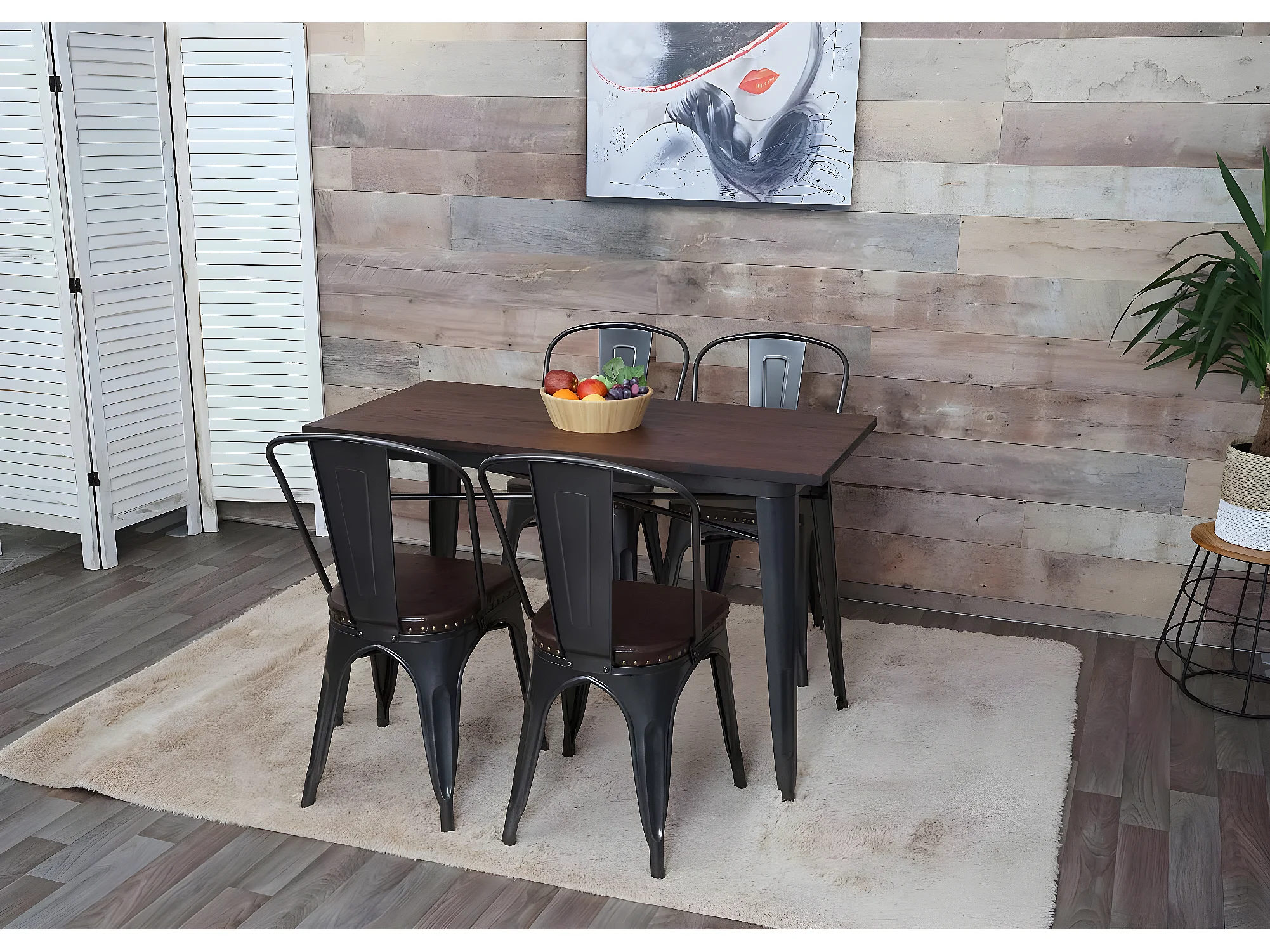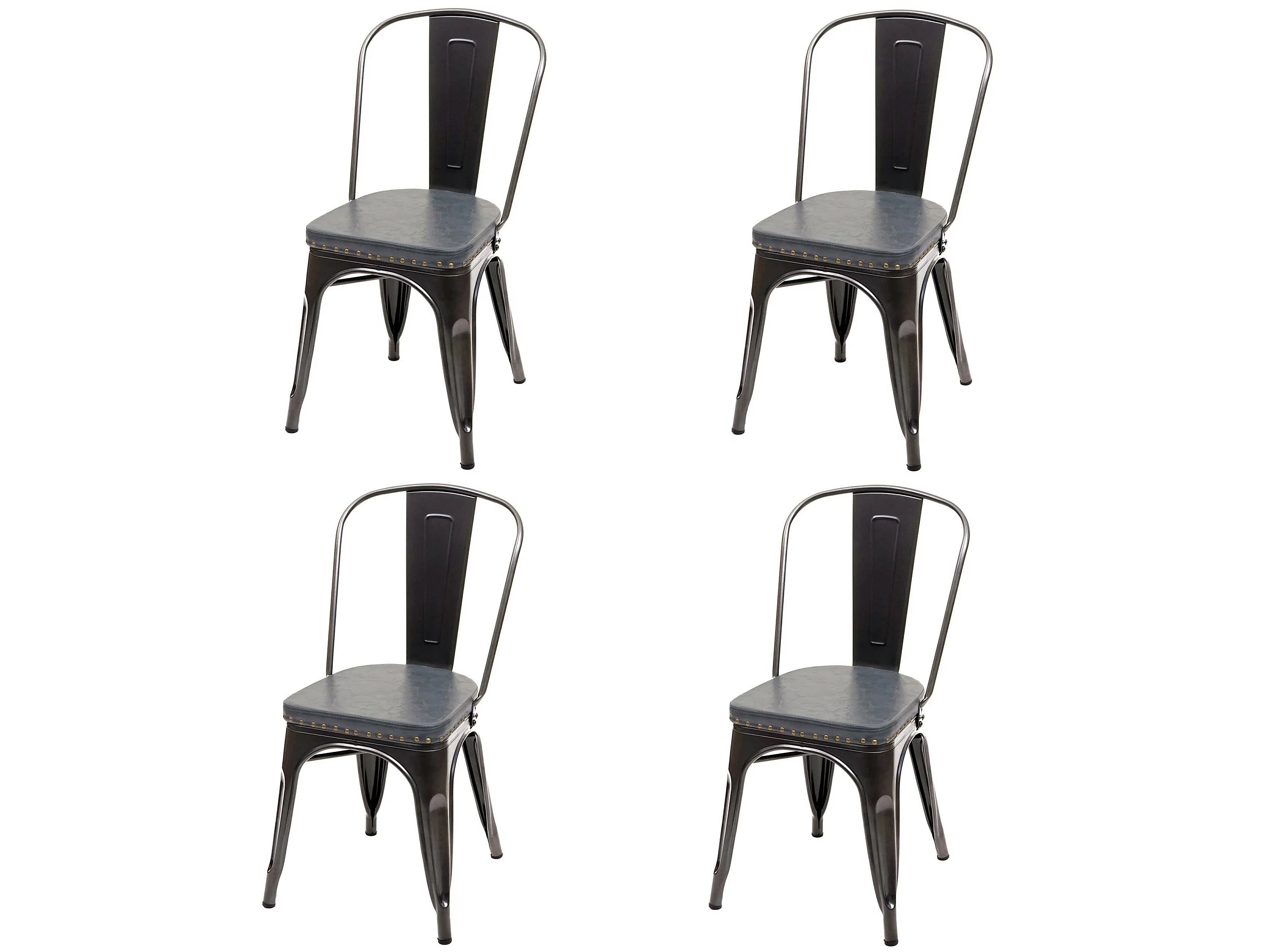4x chaises de salle à manger cuisine design industriel en métal noir assise synthétique gris 04_0000597