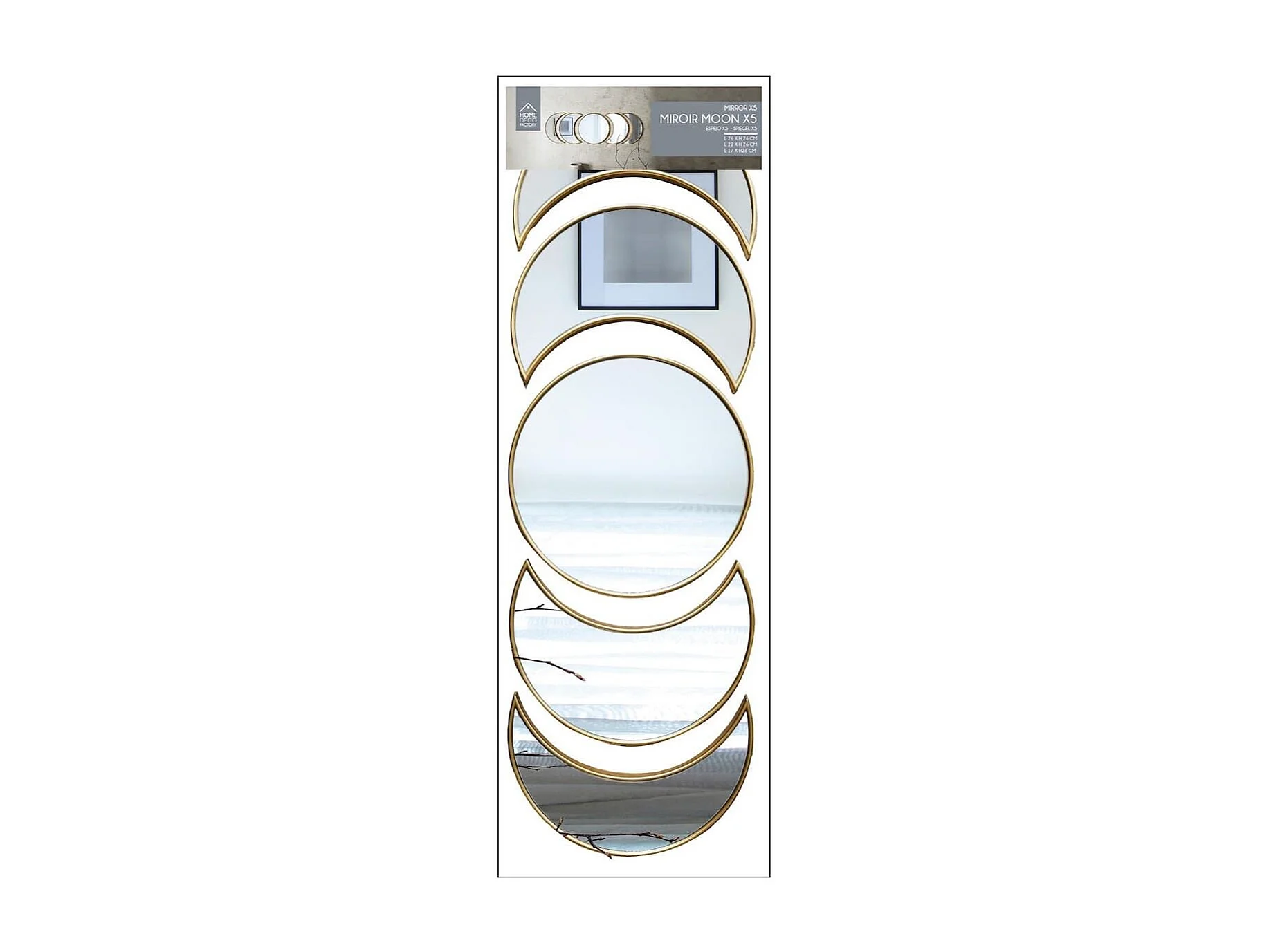 5 miroirs décoratifs phases de lune avec contour doré en polypropylène
