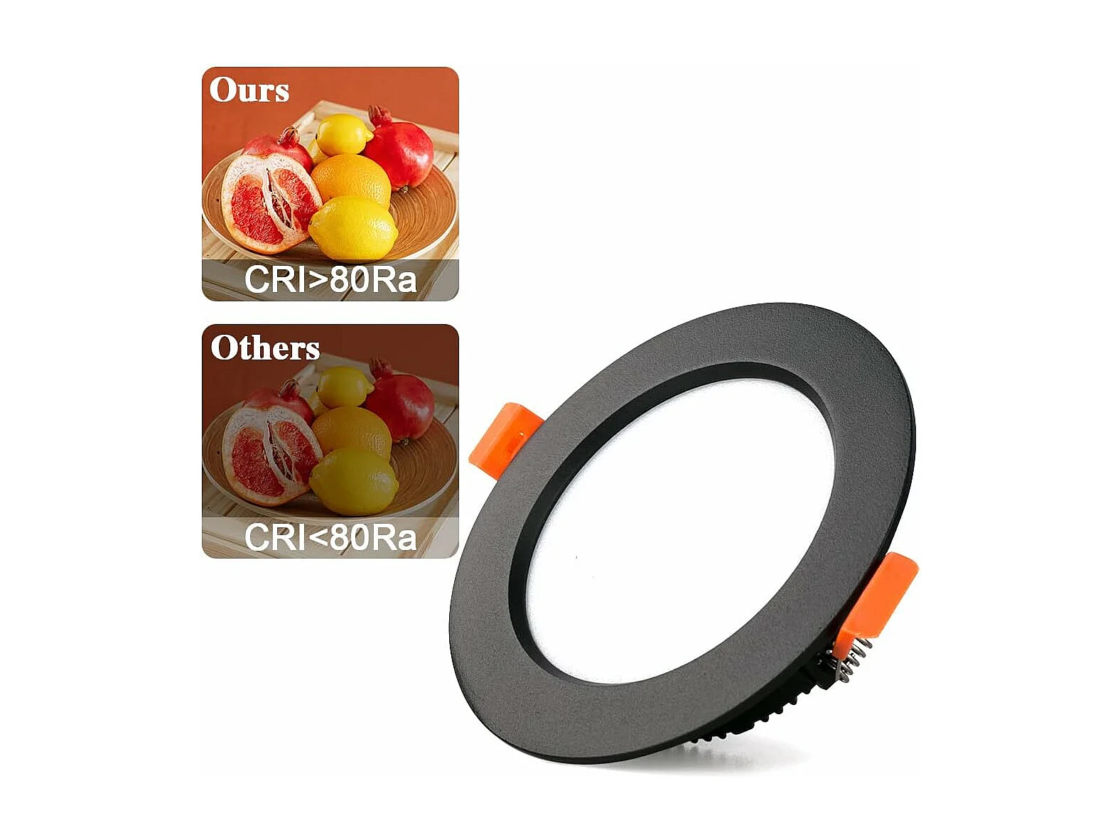 5 Pack LED Spot Encastrable Noir, 9W 900LM = 90W incandescence, IP44, Blanc Froid 6000K, AC 220-240V,Découpe 90-100mm,Rond ultraslim plafond encastré