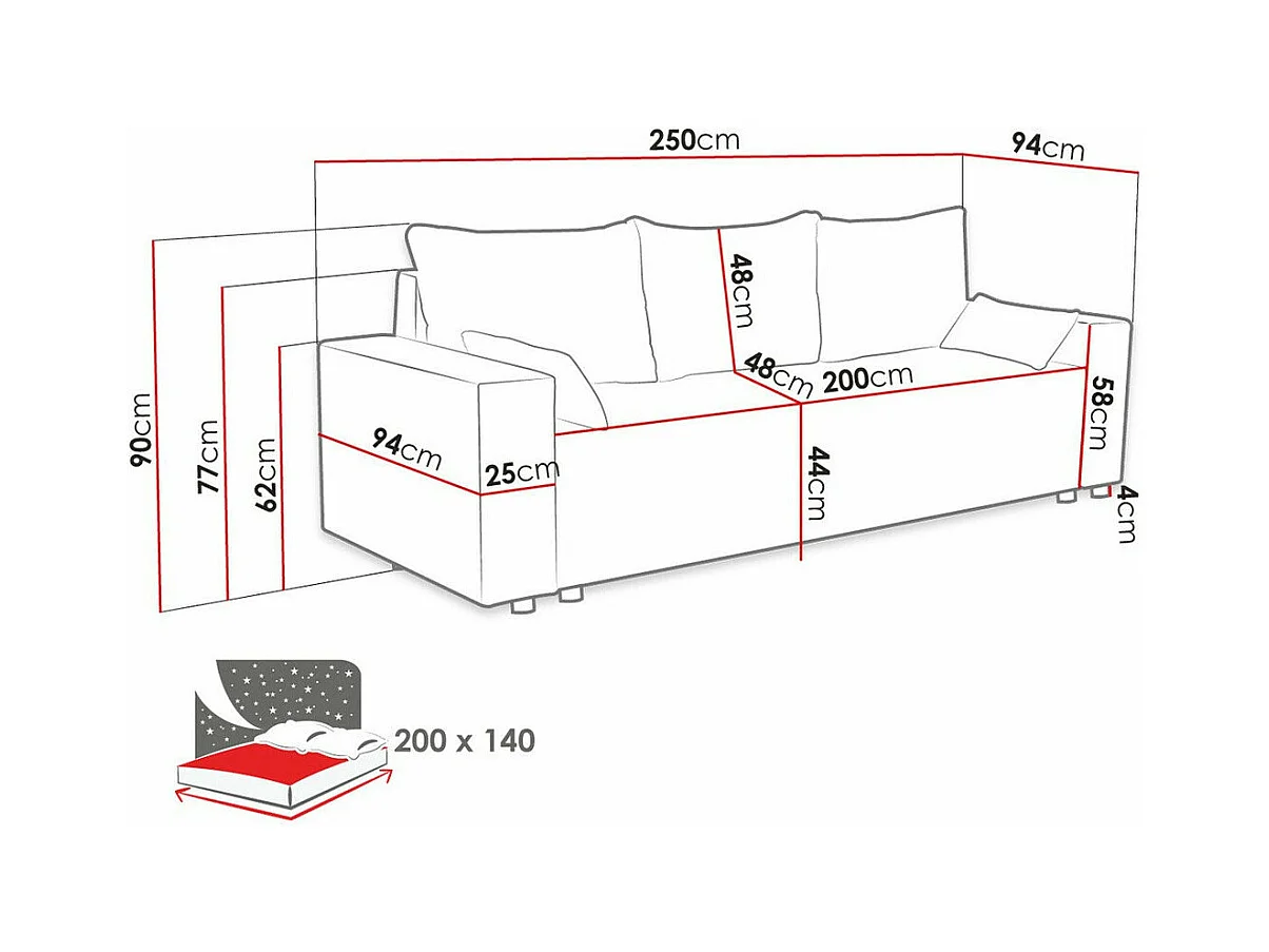 Canapé convertible Clovis 104, Boîte de literie, 90x250x94cm