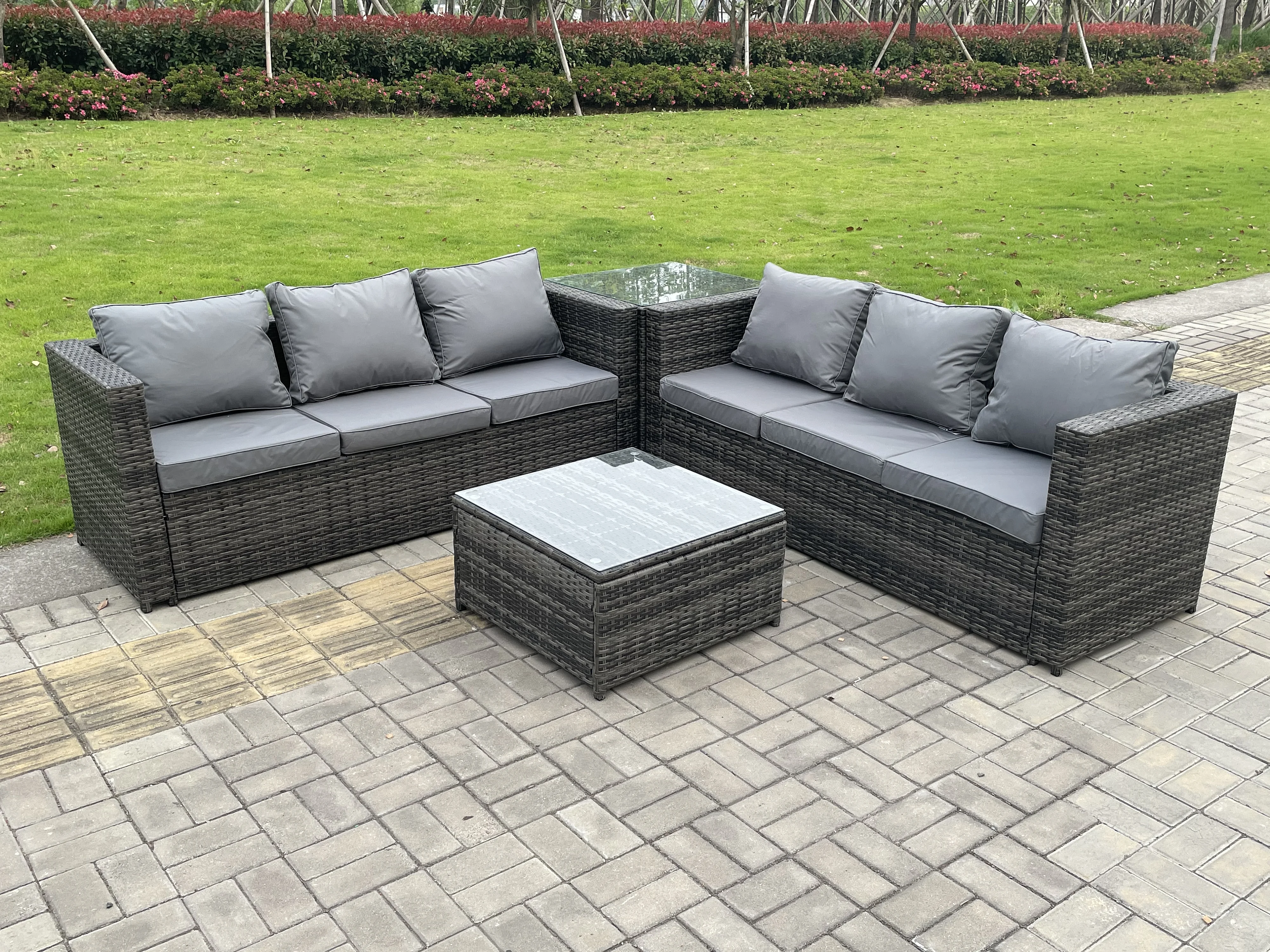 6 places Meubles de Jardin en rotin ave Canapé Table basse Table d'appoint Mélange gris foncé