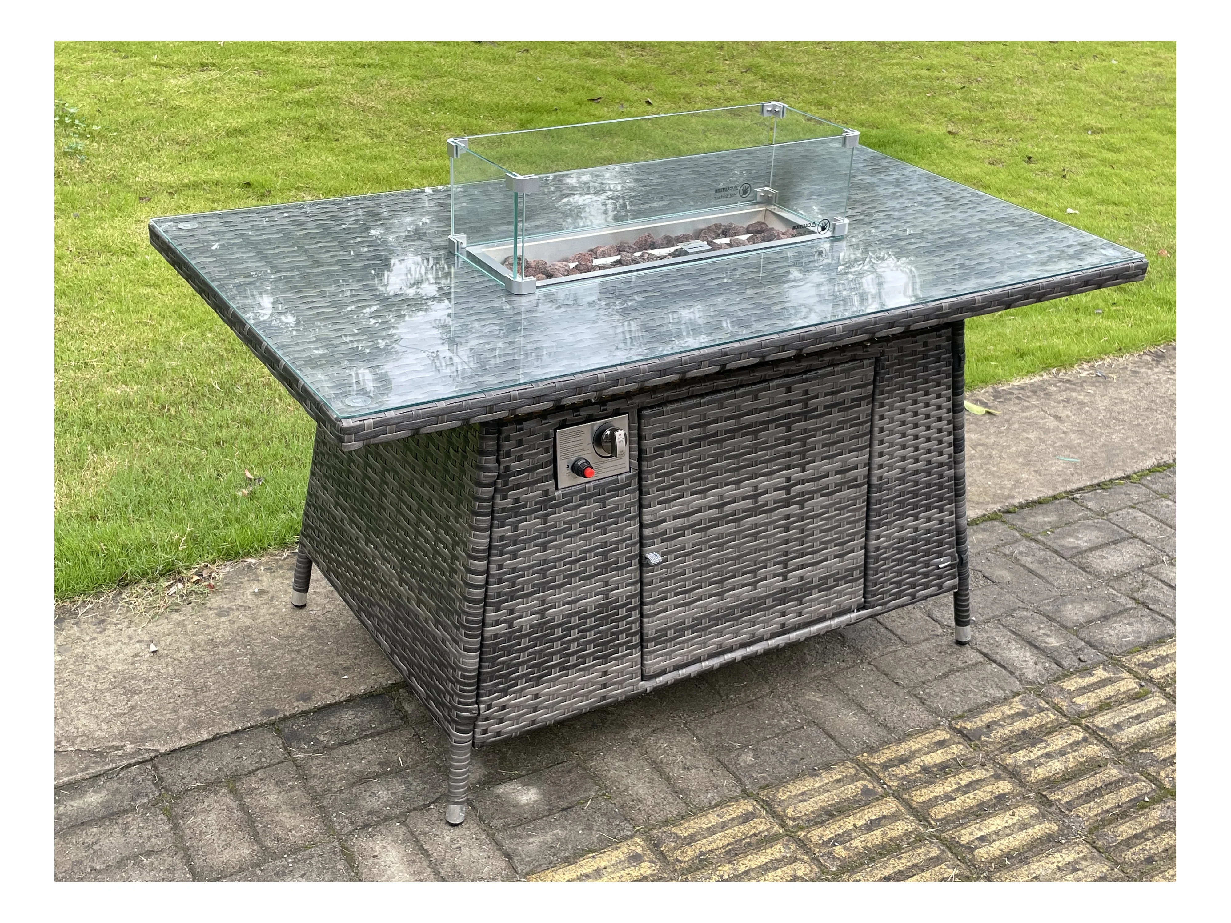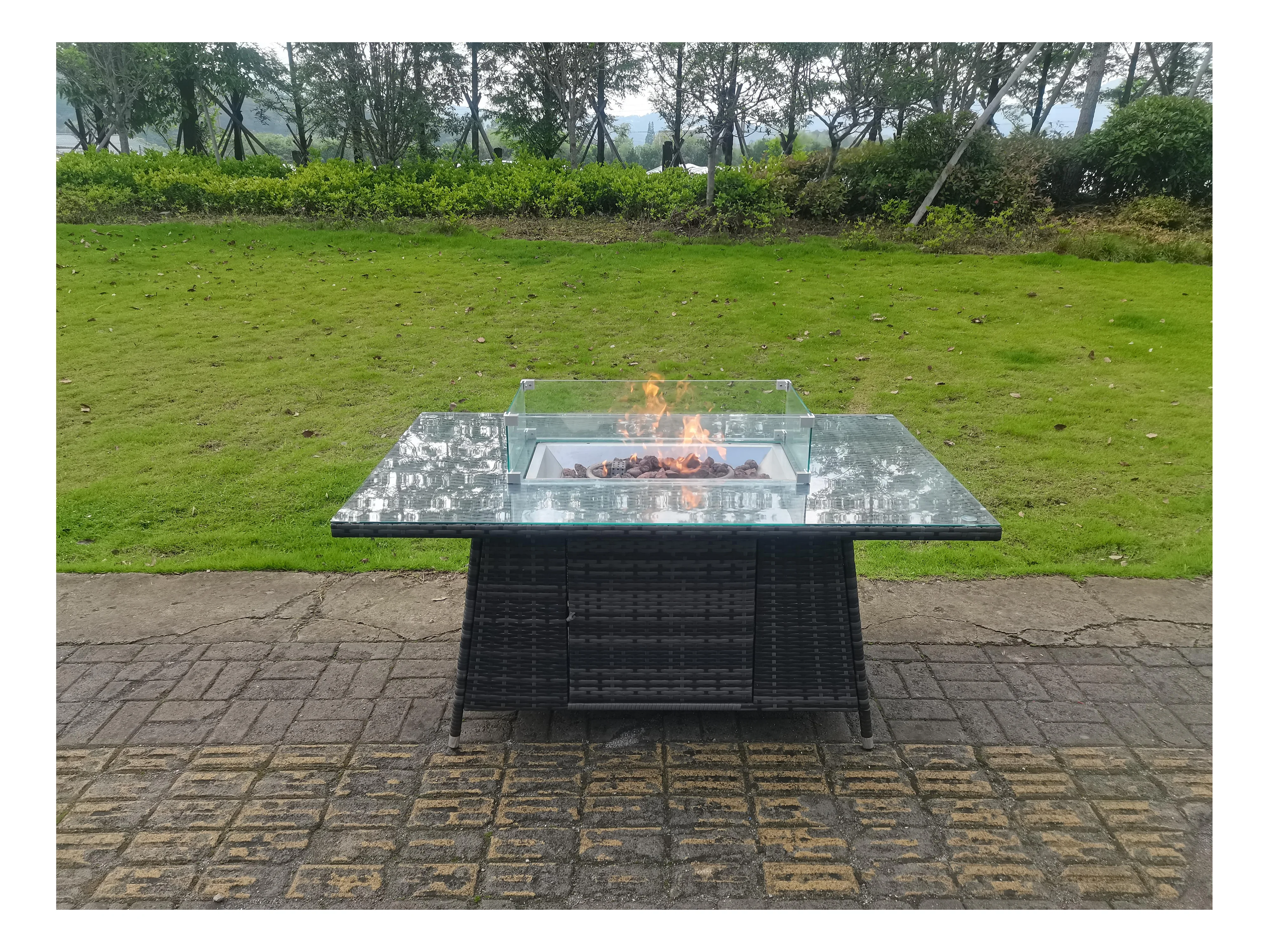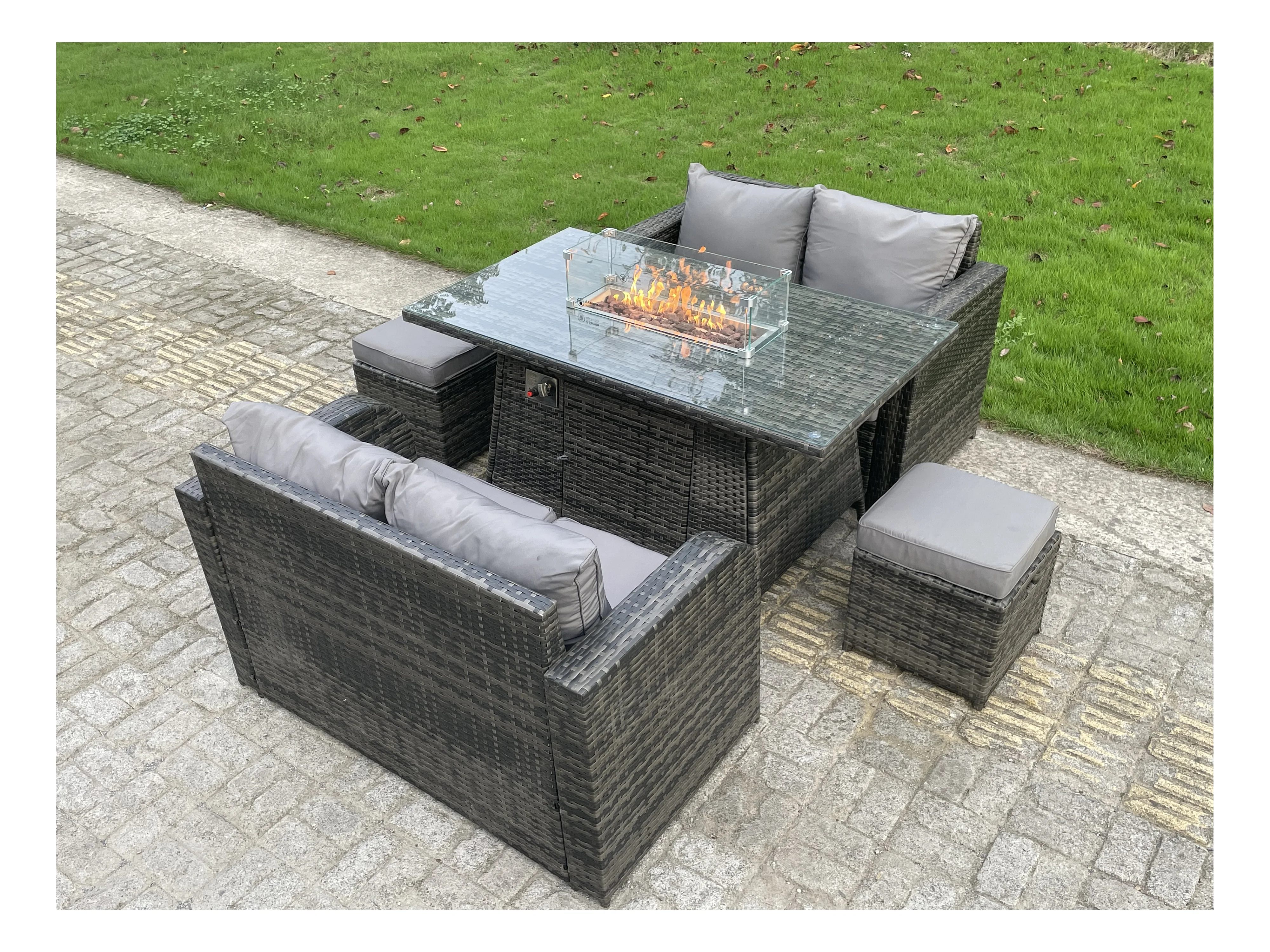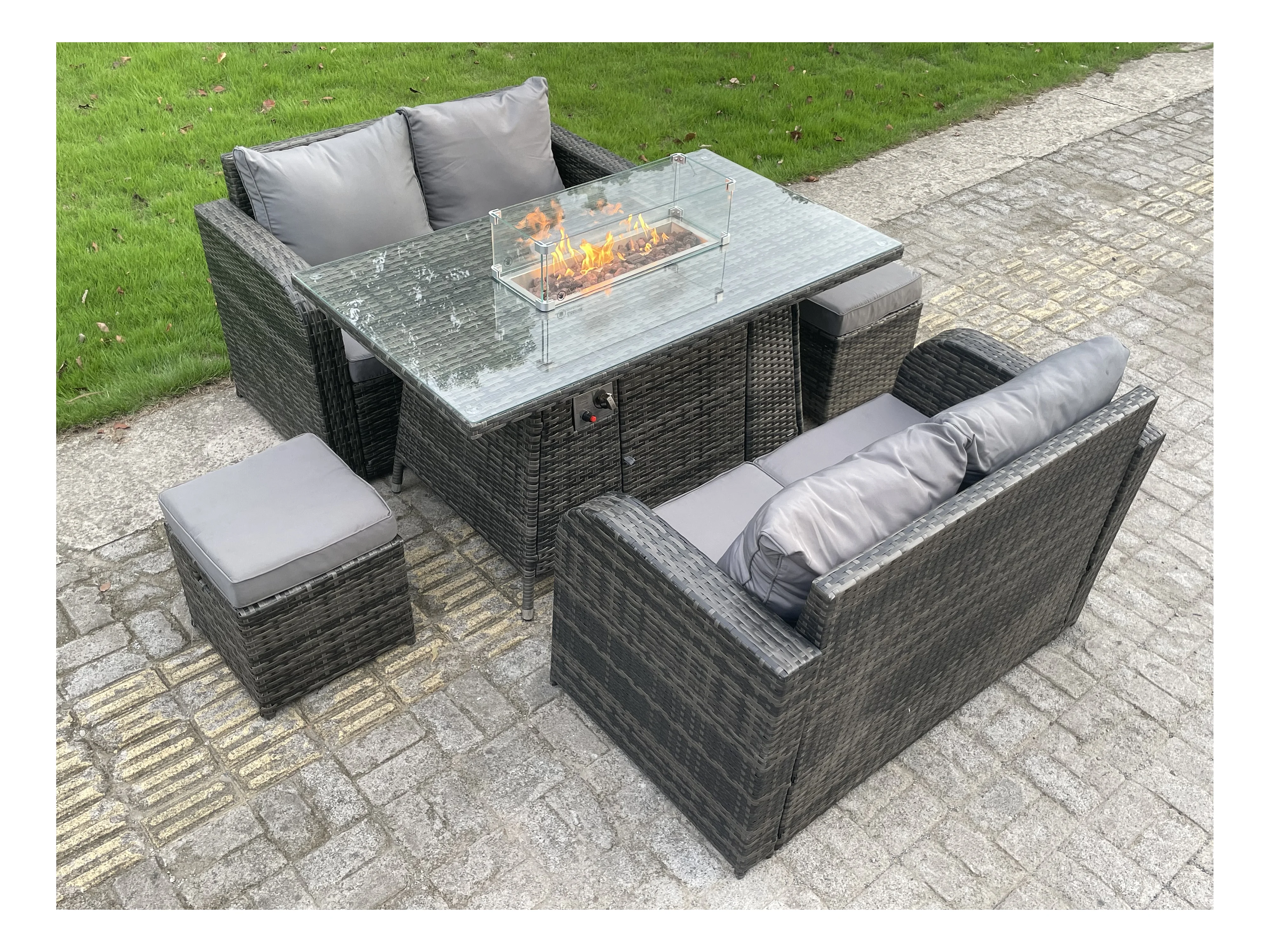 6 Places Meubles de Jardin en rotin ave Table de foyer à gaz Canapé d'amour Table d'appoint Mélange gris foncé