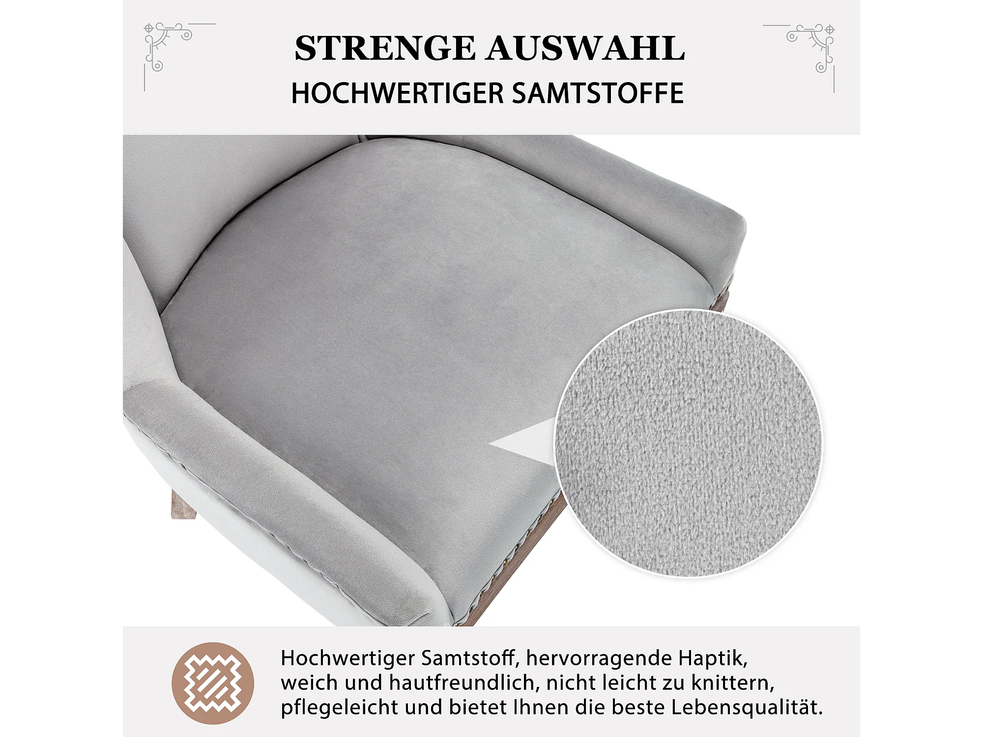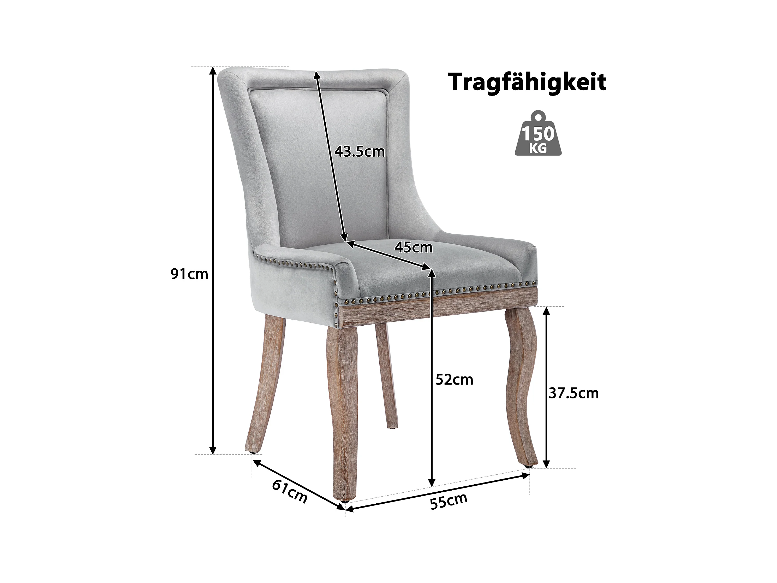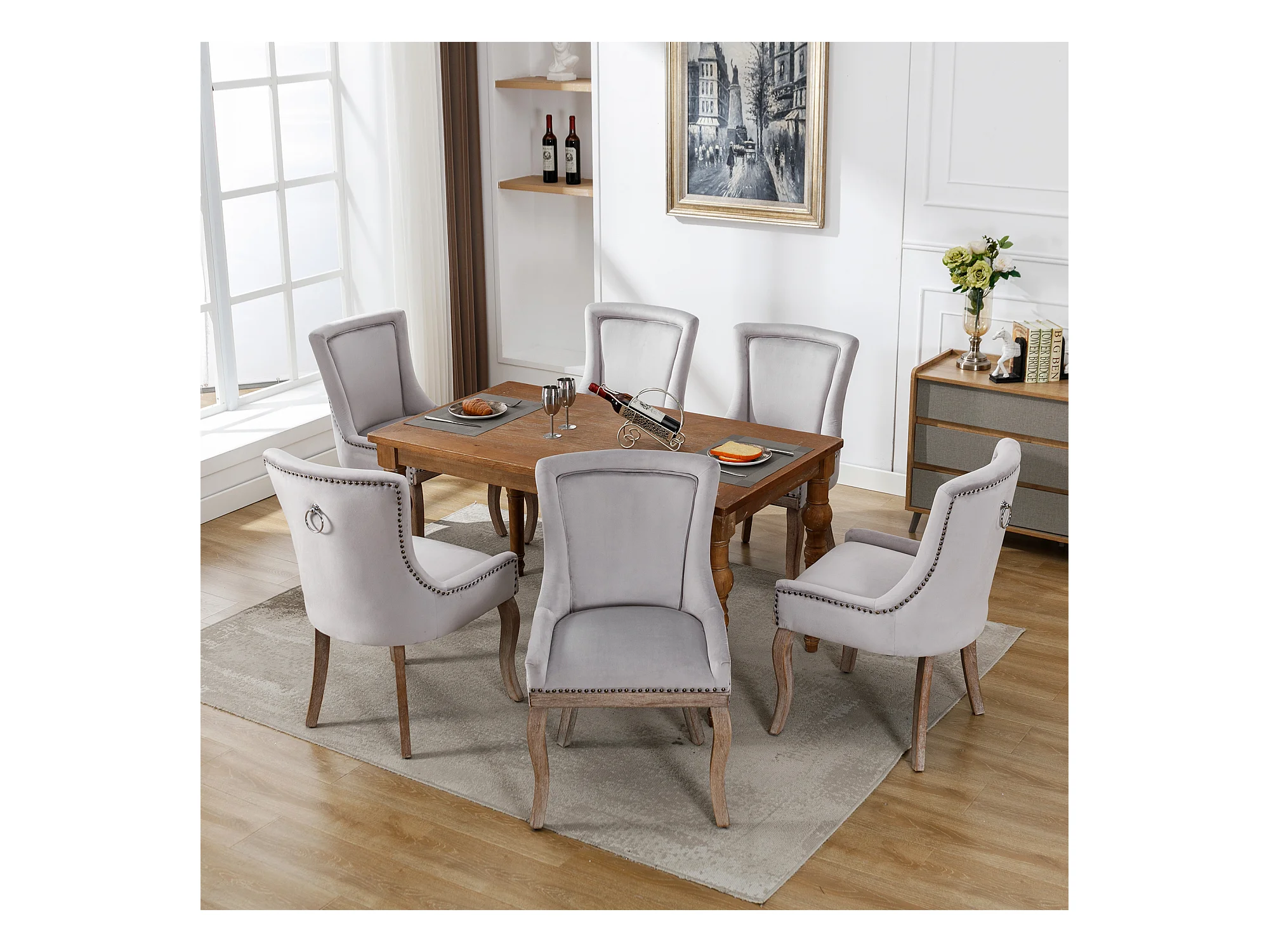 Lot de 6 Chaise de salle à manger Rembourrée avec garniture cloutée et pieds en bois - Gris