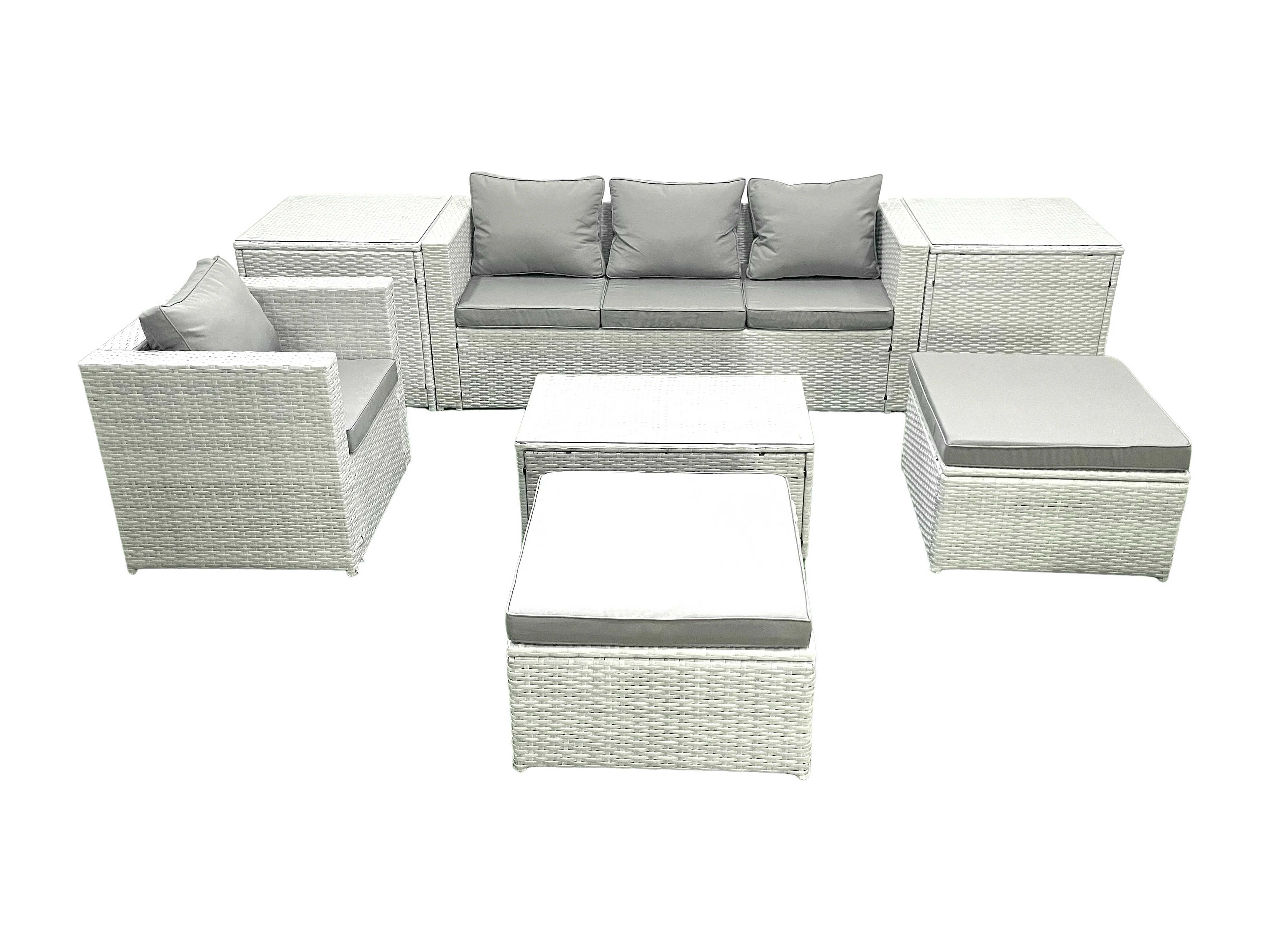 7 Pièces Salon de jardin Canapé de jardin avec Fauteuil Table basse 2 Tables d'appoint 2 Grand tabourets Gris clair mixte