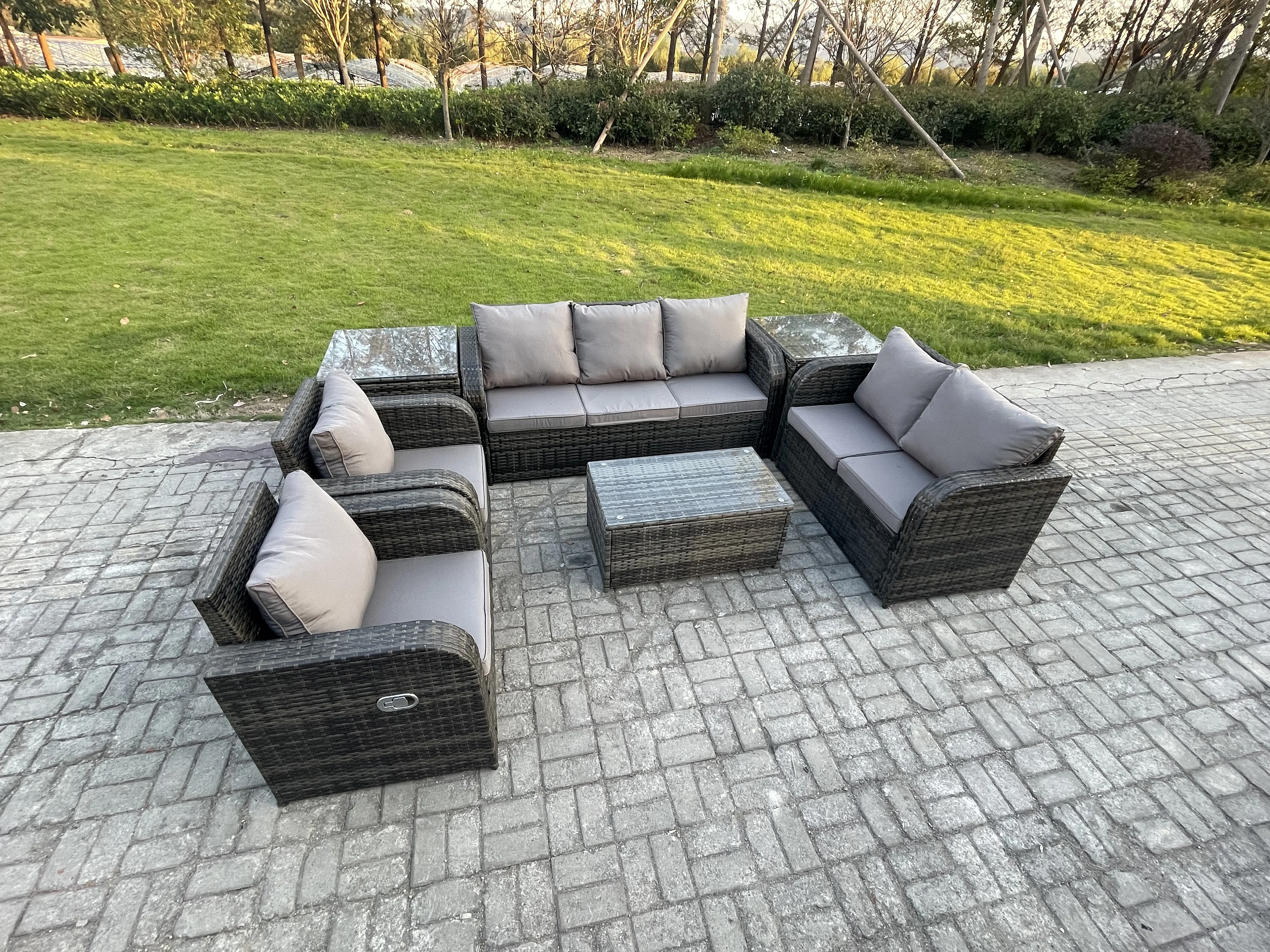 7 places Ensemble de Meubles de Jardin avec Table basse rectangulaire Canapé 3 places Canapé d'amour 2 Tables d'appoint