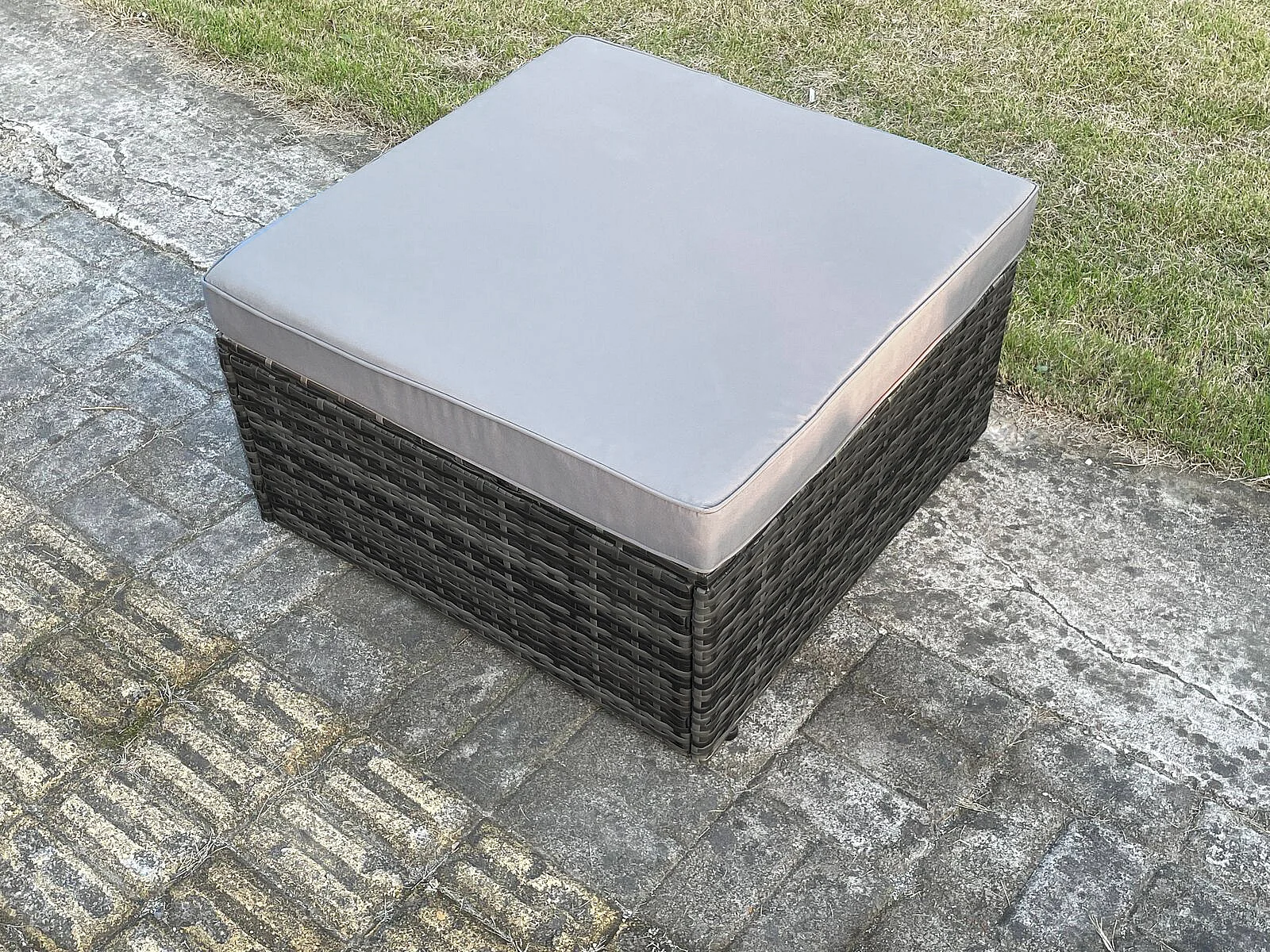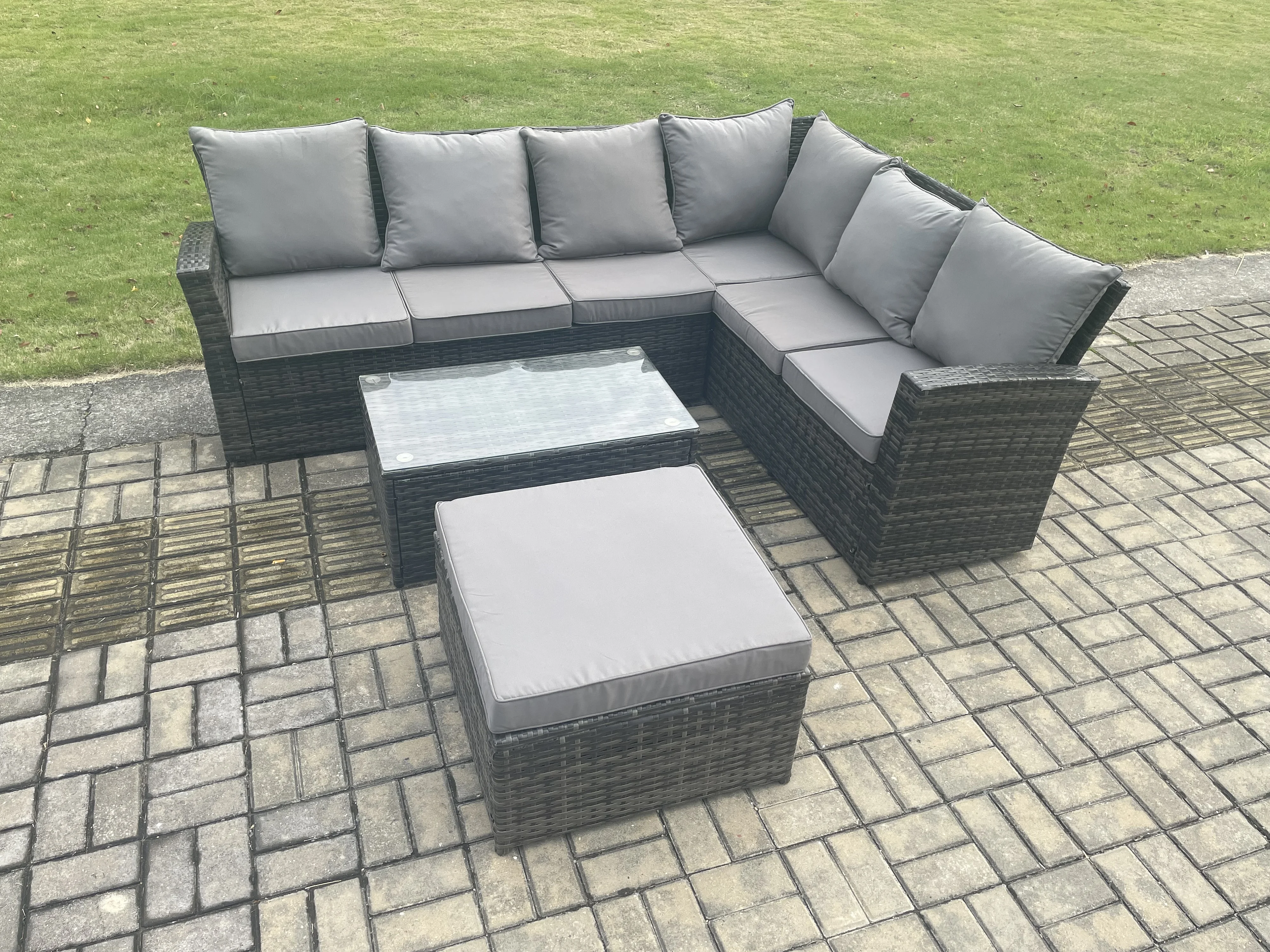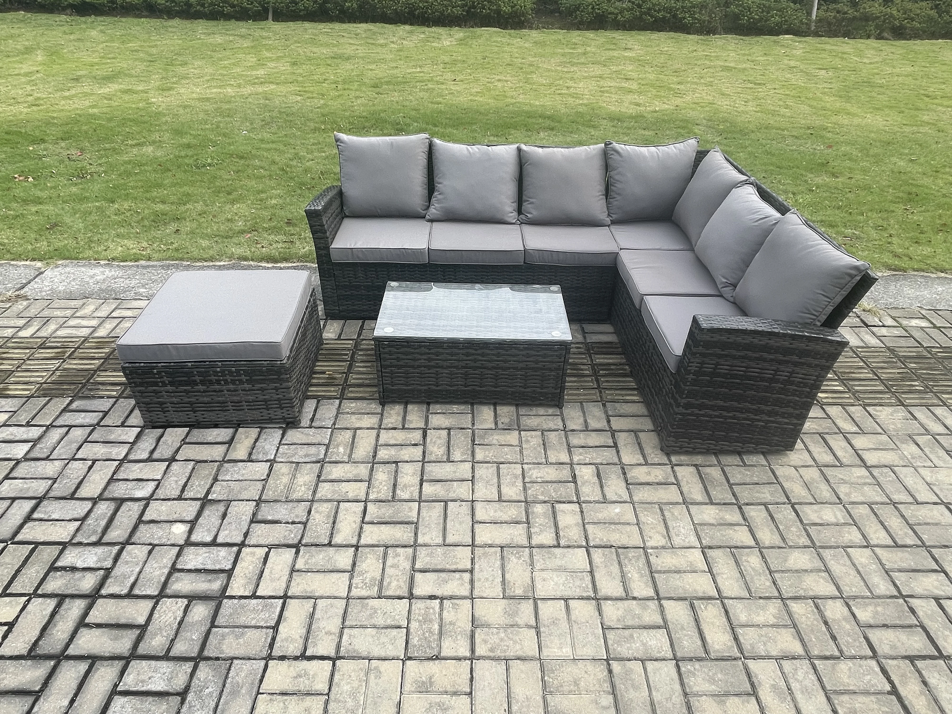 7 places Ensemble de meubles de jardin en polyrotin avec Canapé à haut dossier Table basse rectangulaire Grand tabouret Gris foncé mixte