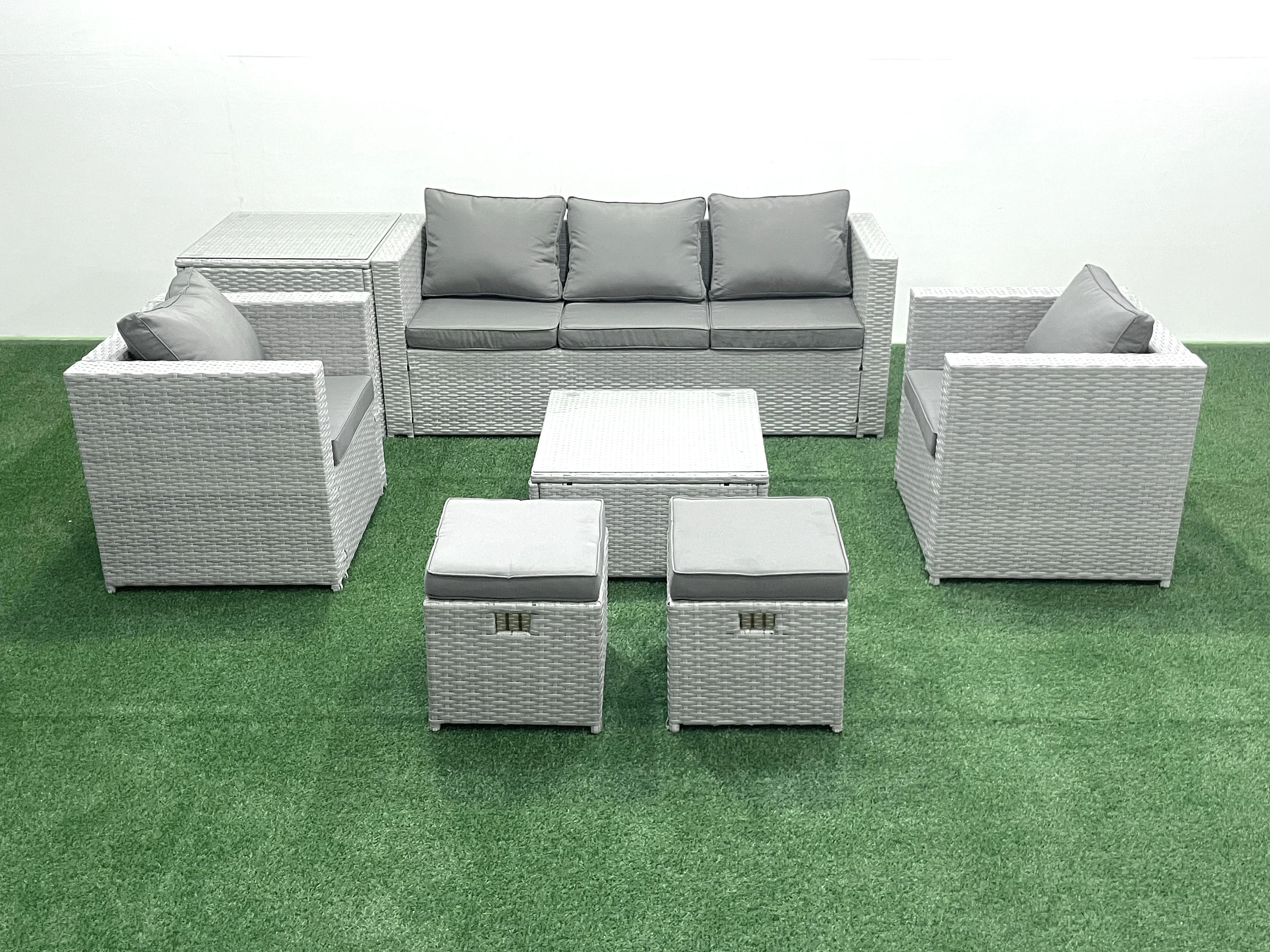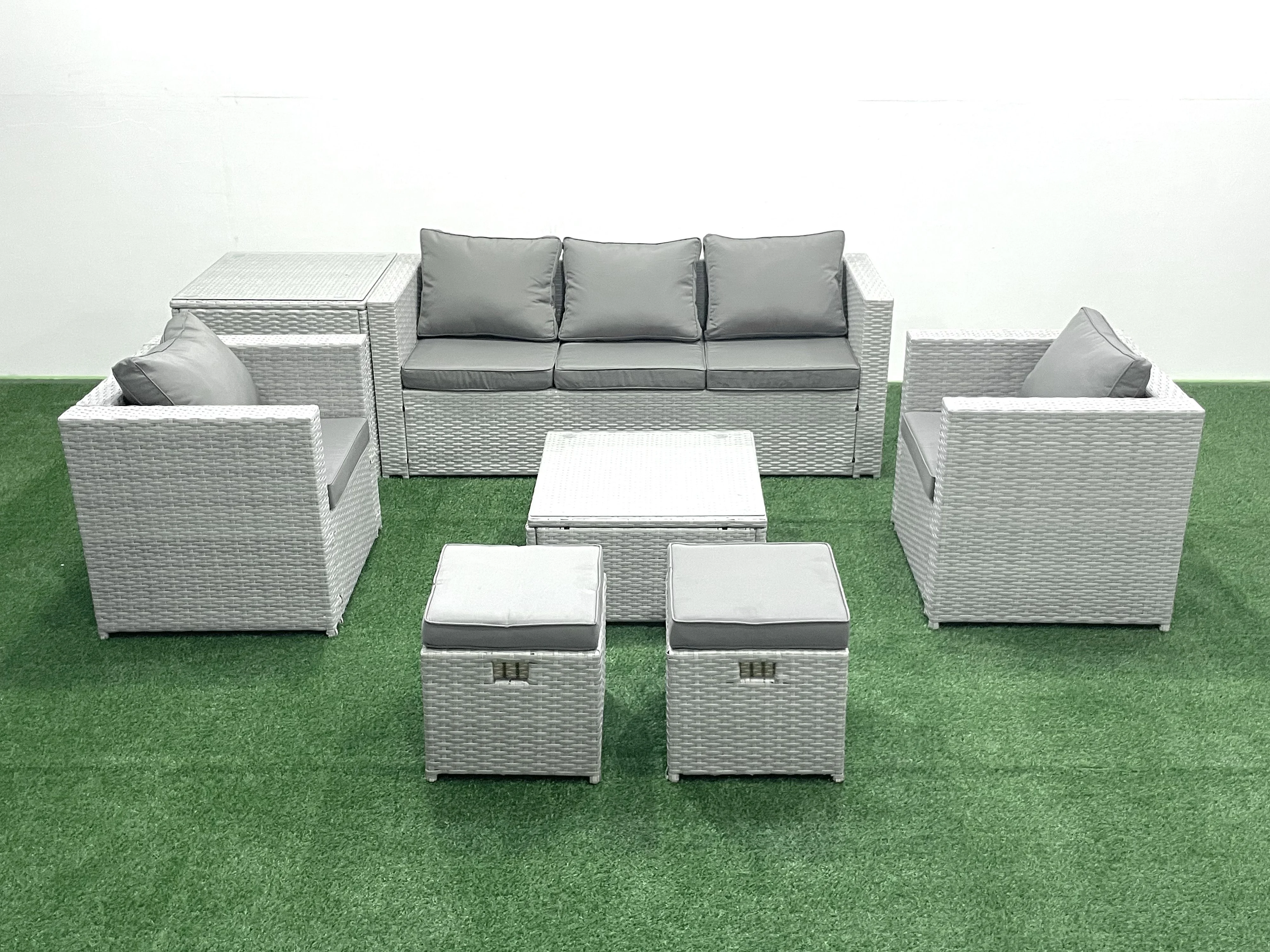 7 places Salon de jardin avec Canapé 3 places 2 Chaise Table basse carrée 2 Petits tabourets Table d'appoint Gris clair mixte