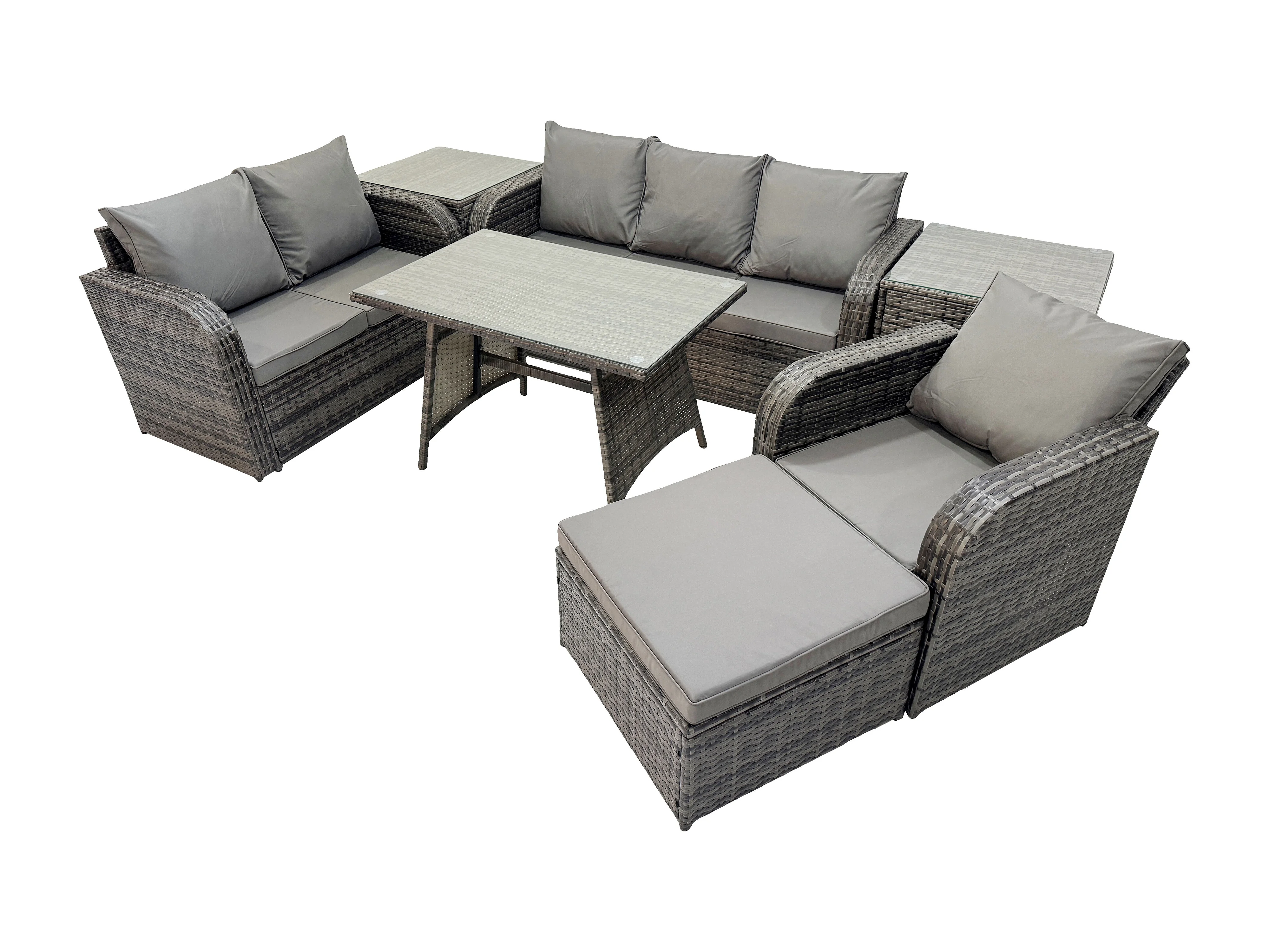 7 places Salon de jardin exterieur Ensemble de canapés en rotin avec Table à manger 2 Tables d'appoint Grand tabouret Gris foncé mixte