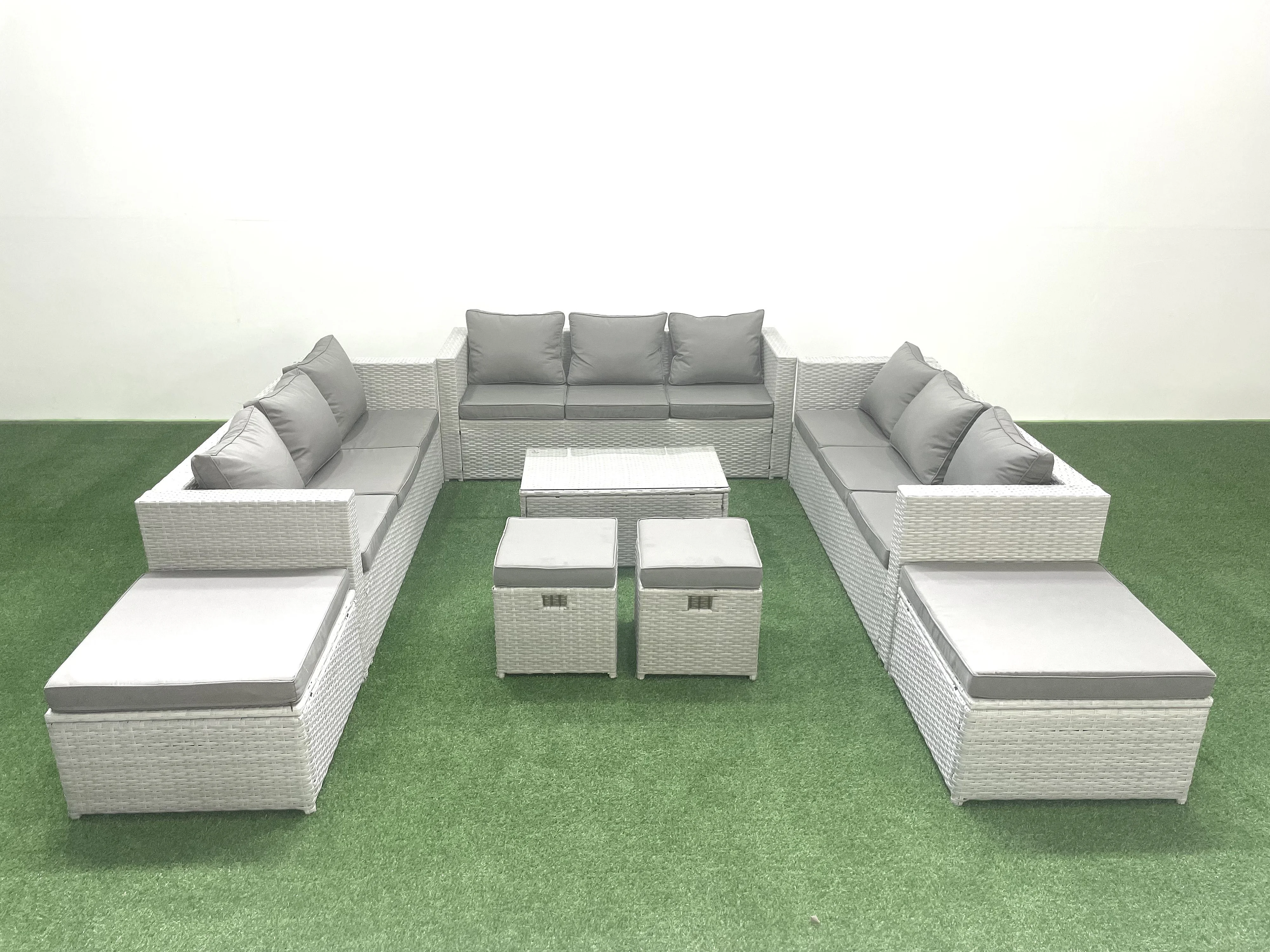 8 Pièces Salon de jardin Canapé de jardin Table basse avec 4 Tabourets Gris clair mixte