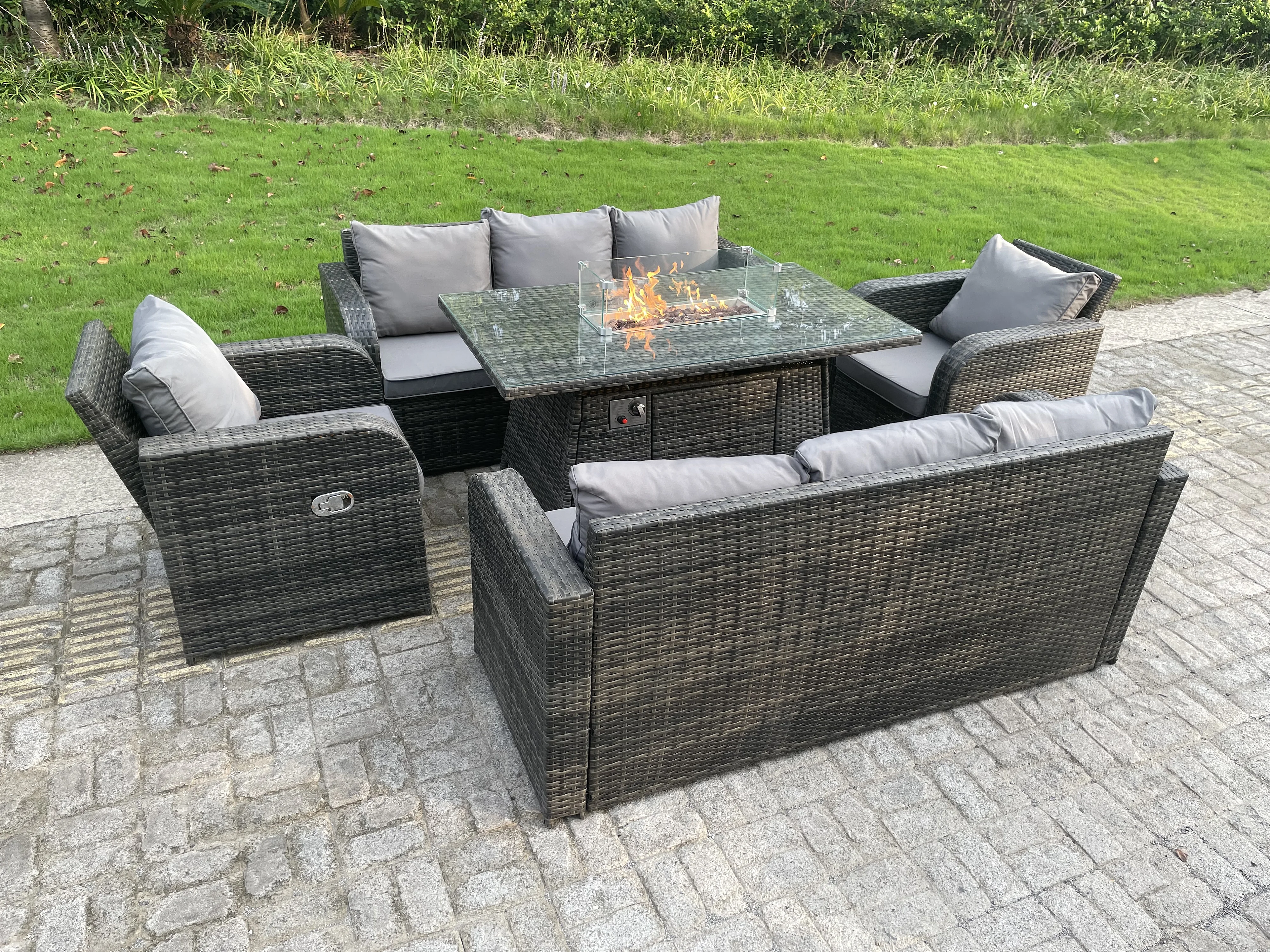 8 places Ensemble De Mobilier en rotin ave Canapé Chaises inclinable Table de foyer à gaz Mélange gris foncé