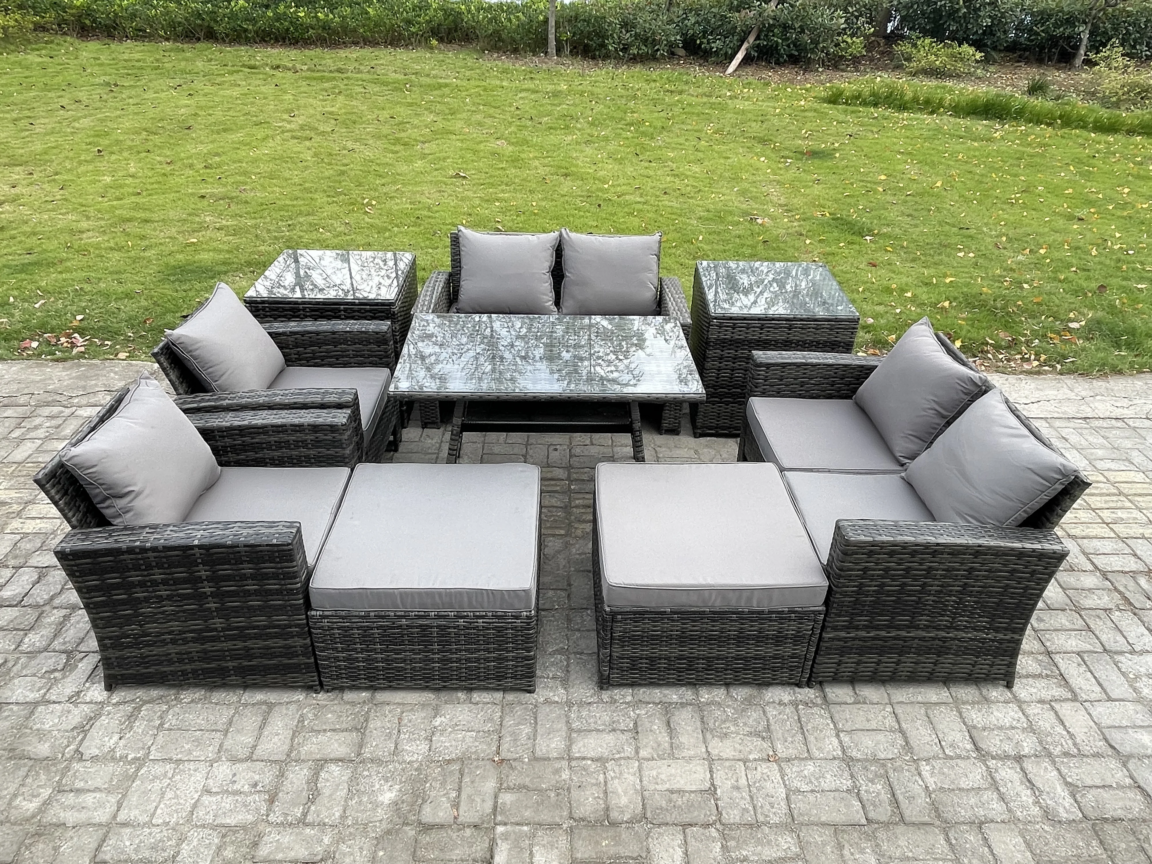 9 Pièces Ensemble de canapé en rotin extérieur avec 2 Grand tabourets 2 Tables d'appoint Gris foncé mixte