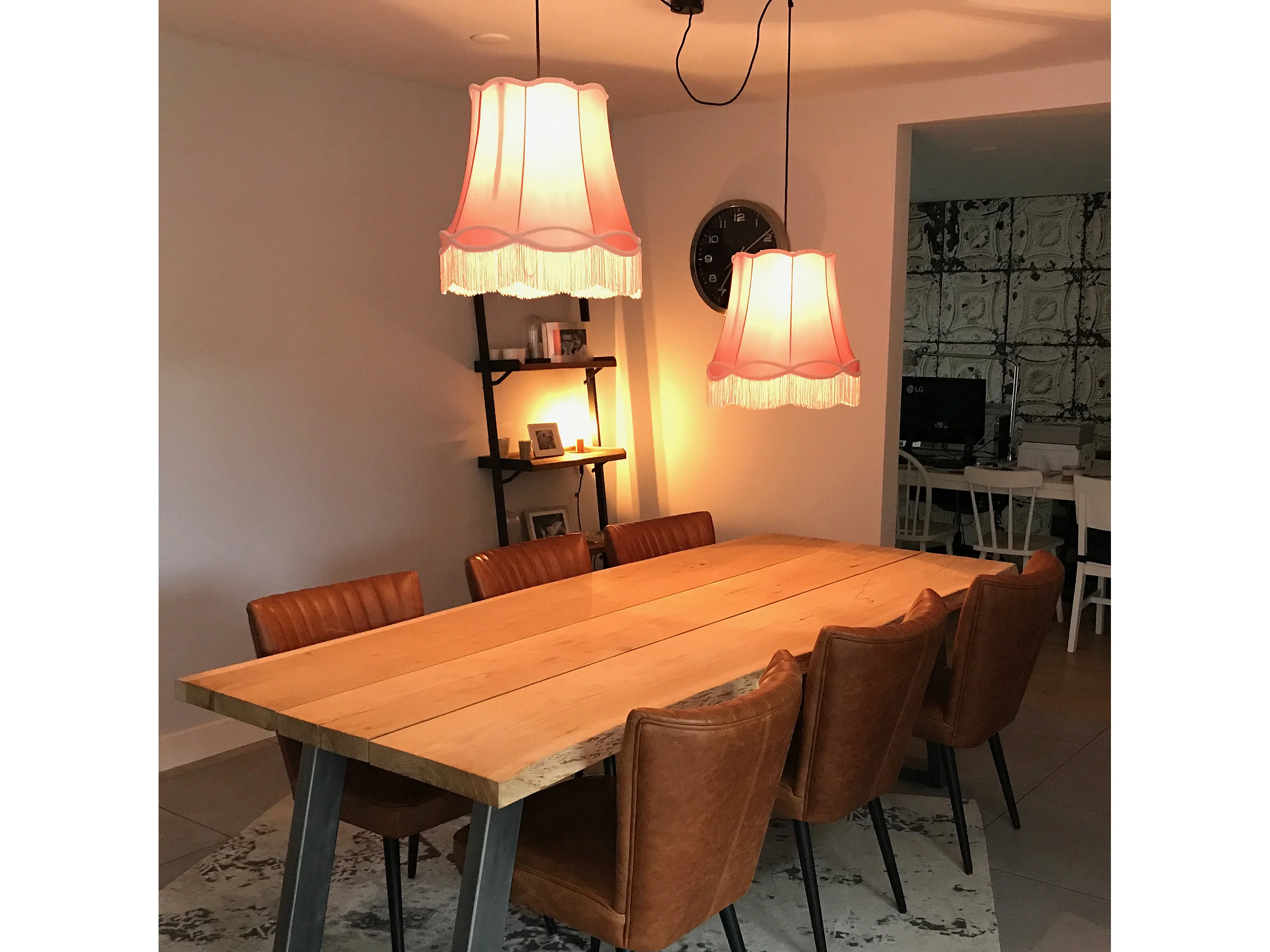 Abat-jour velours rose 35/35/20 avec intérieur doré