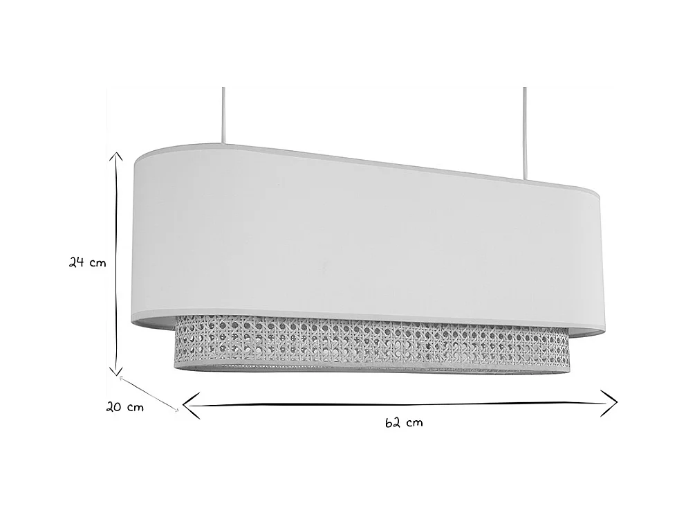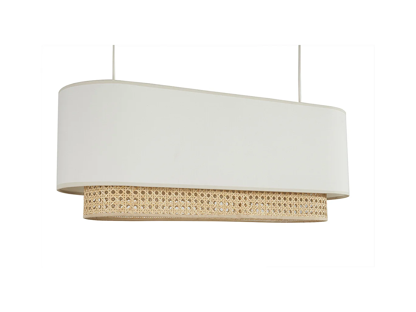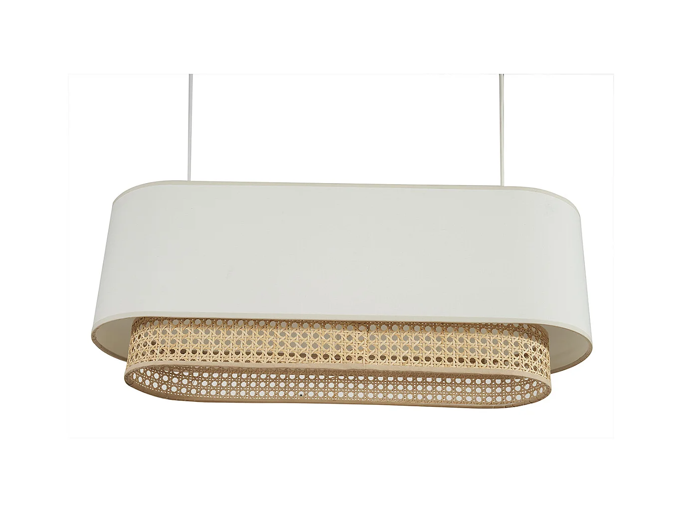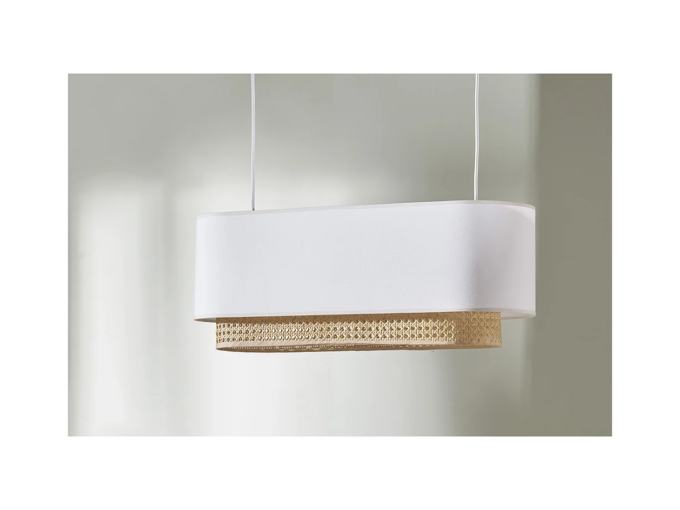 Abat-jour pour suspension double en tissu blanc et cannage rotin naturel L62 cm TIWY