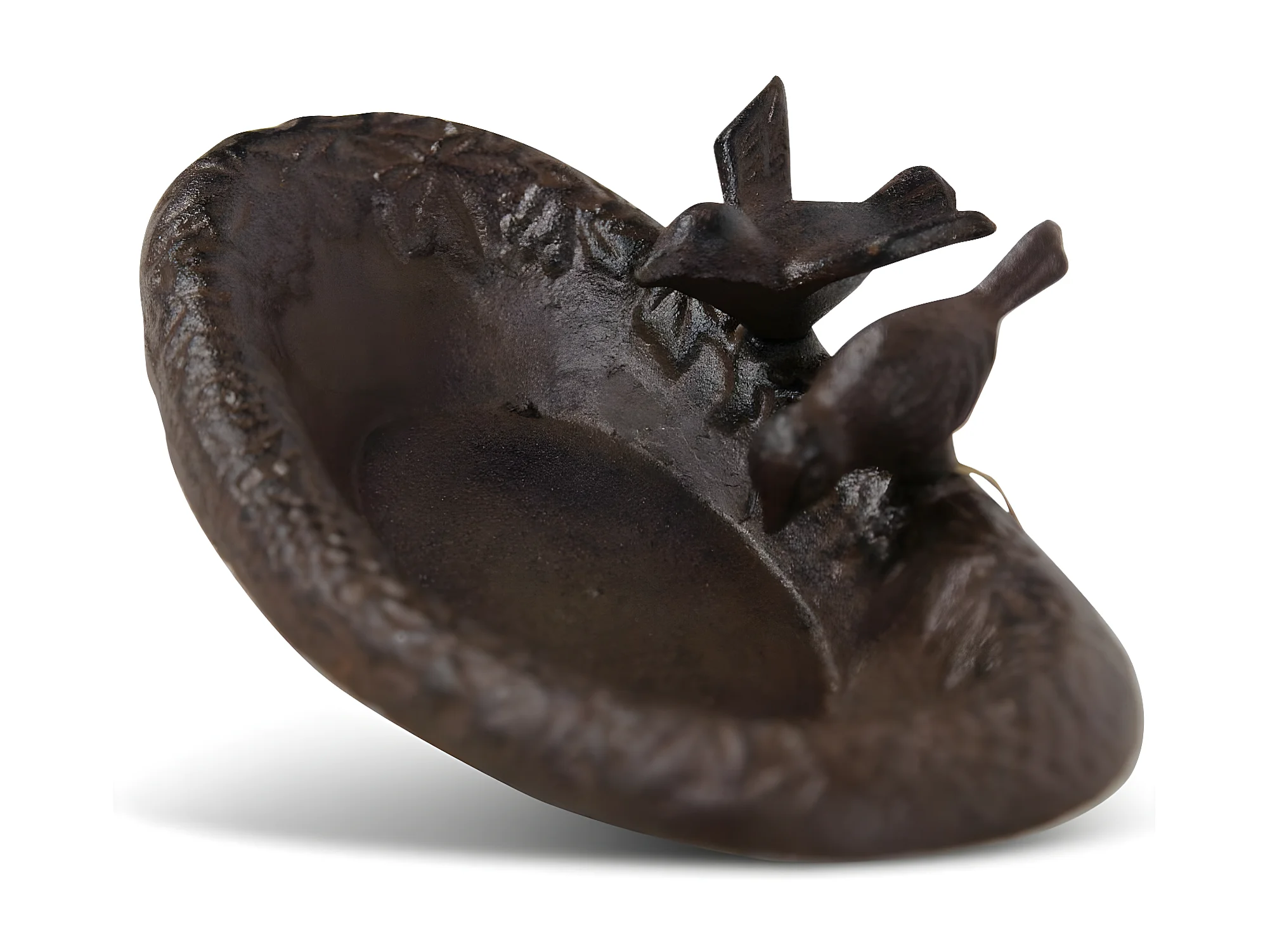 Abreuvoir 2 oiseaux fonte 23.5x14.5x6 Fonte Marron - Décoration d'Autrefois