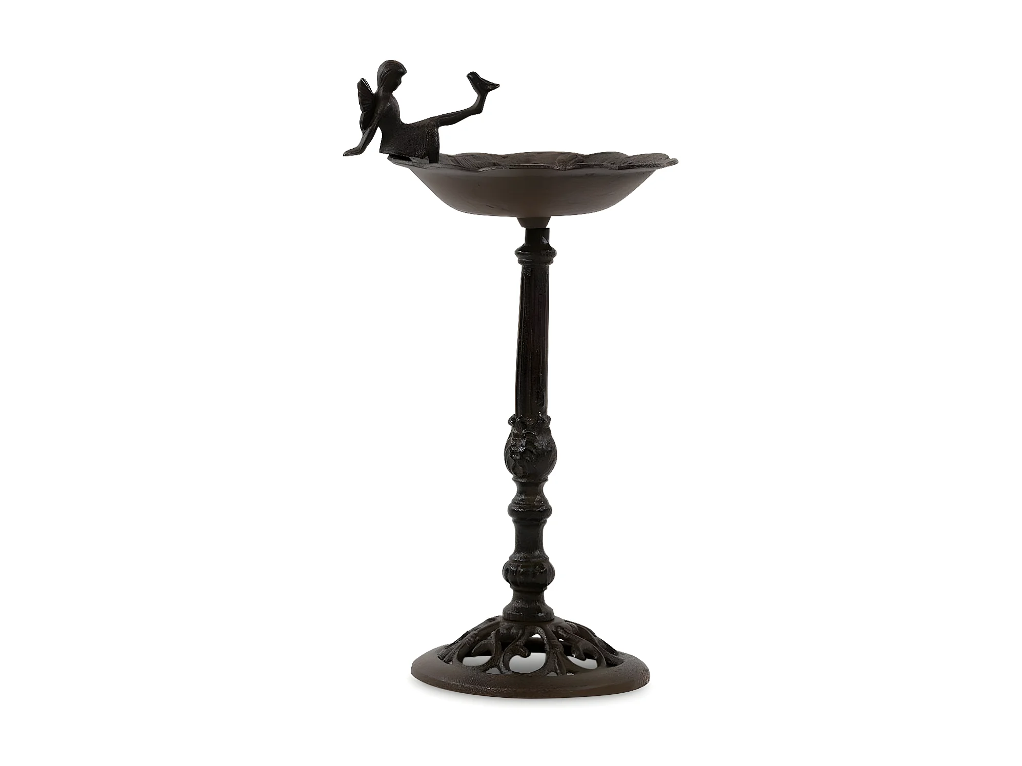 Abreuvoir oiseau ange sur pied fonte Fonte Marron - Décoration d'Autrefois