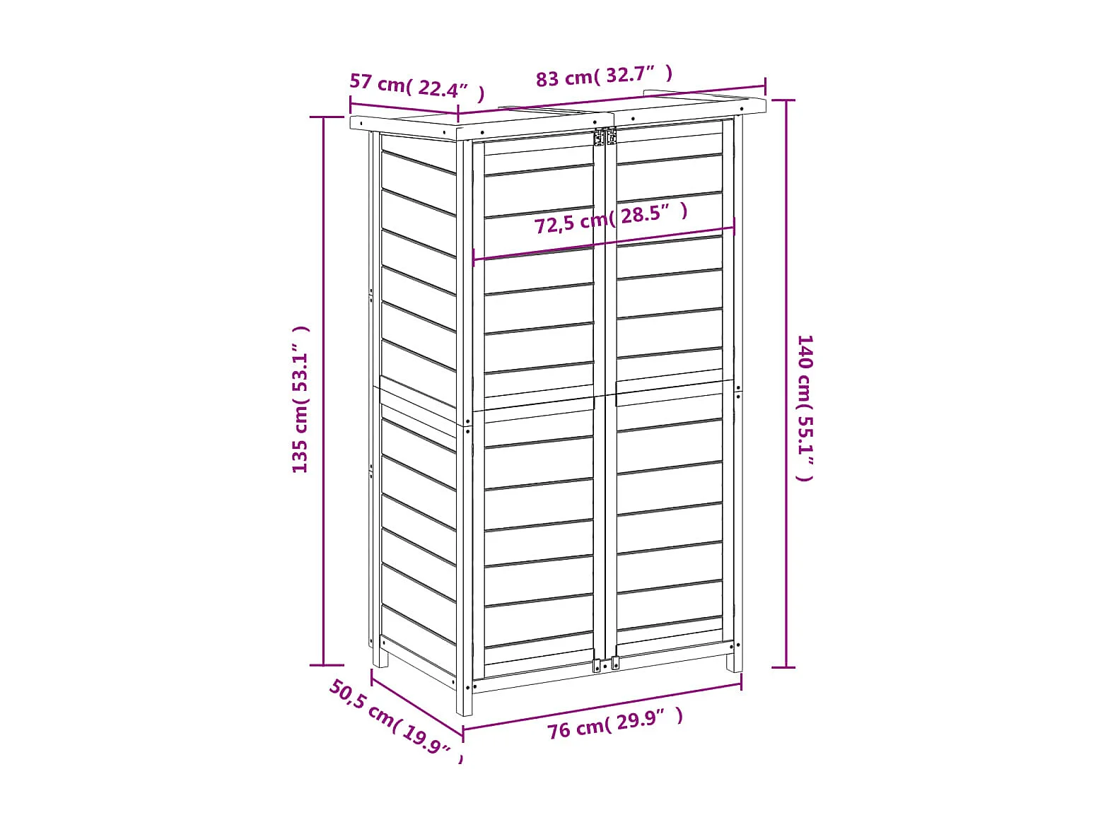 Abri à outils de jardin moka 83x57x140 bois massif pin